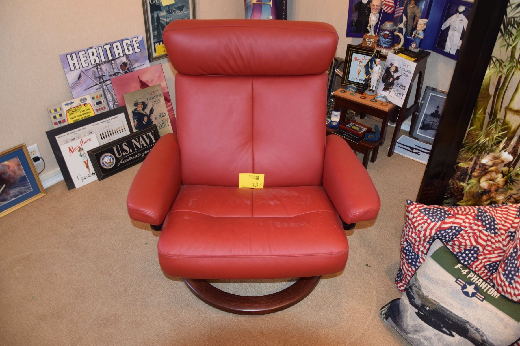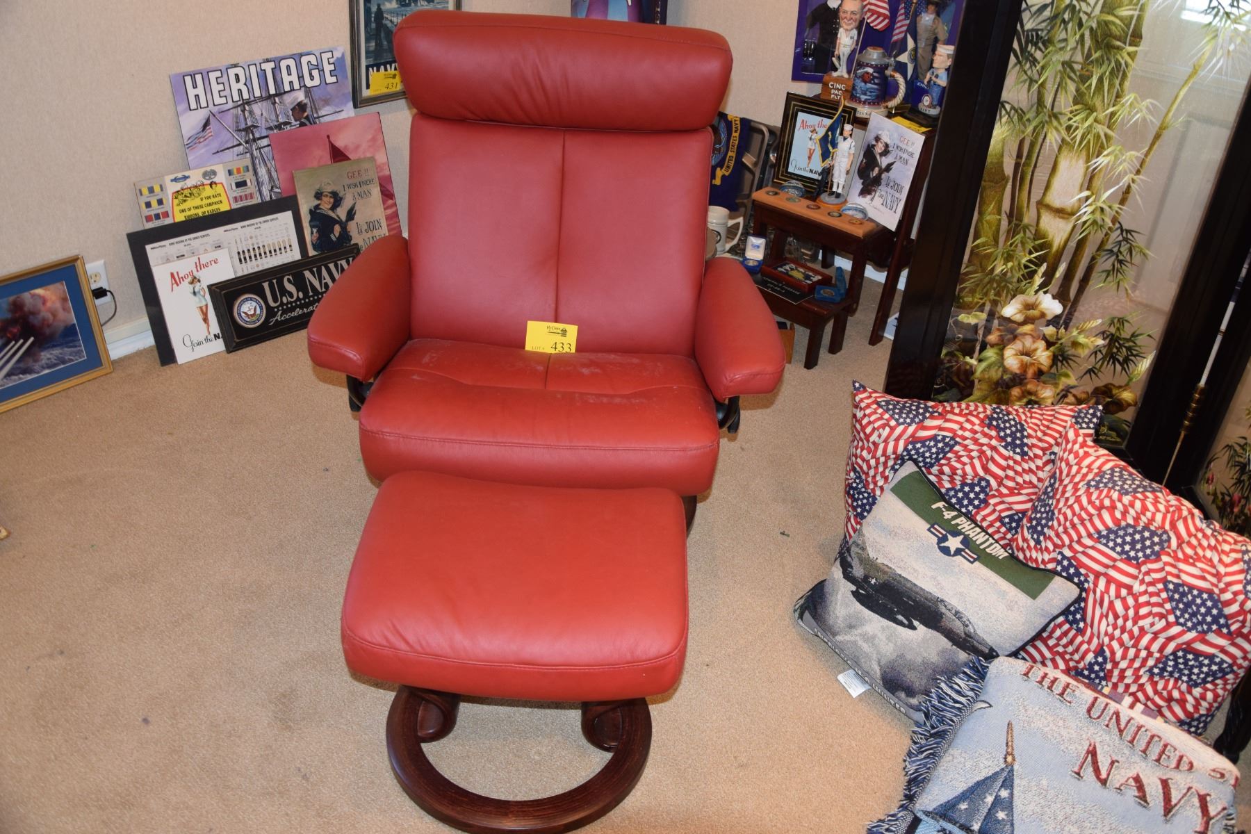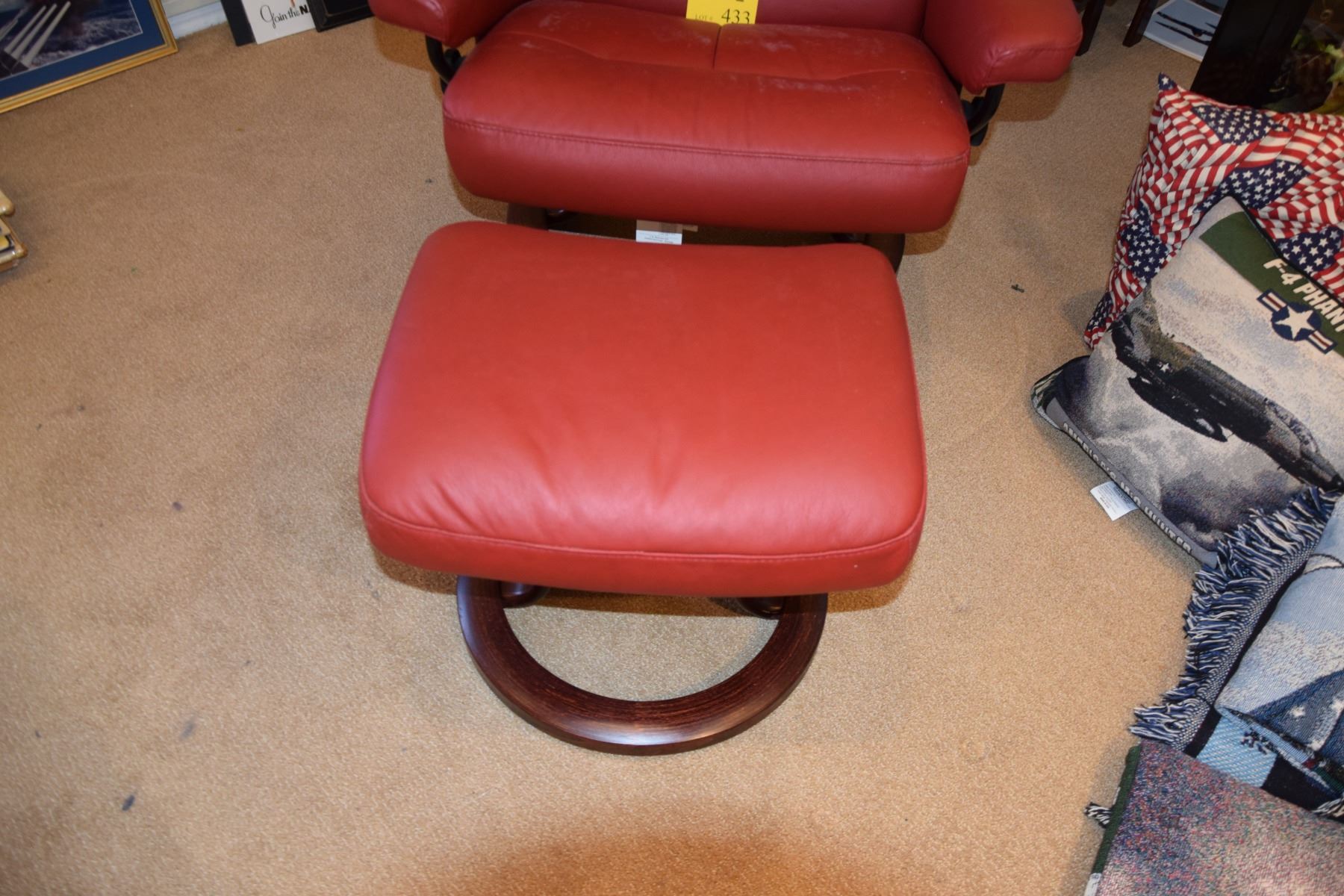 RED LEATHER STRESSLESS CHAIR W/OTTOMAN BY EKORNES (2 PCS)