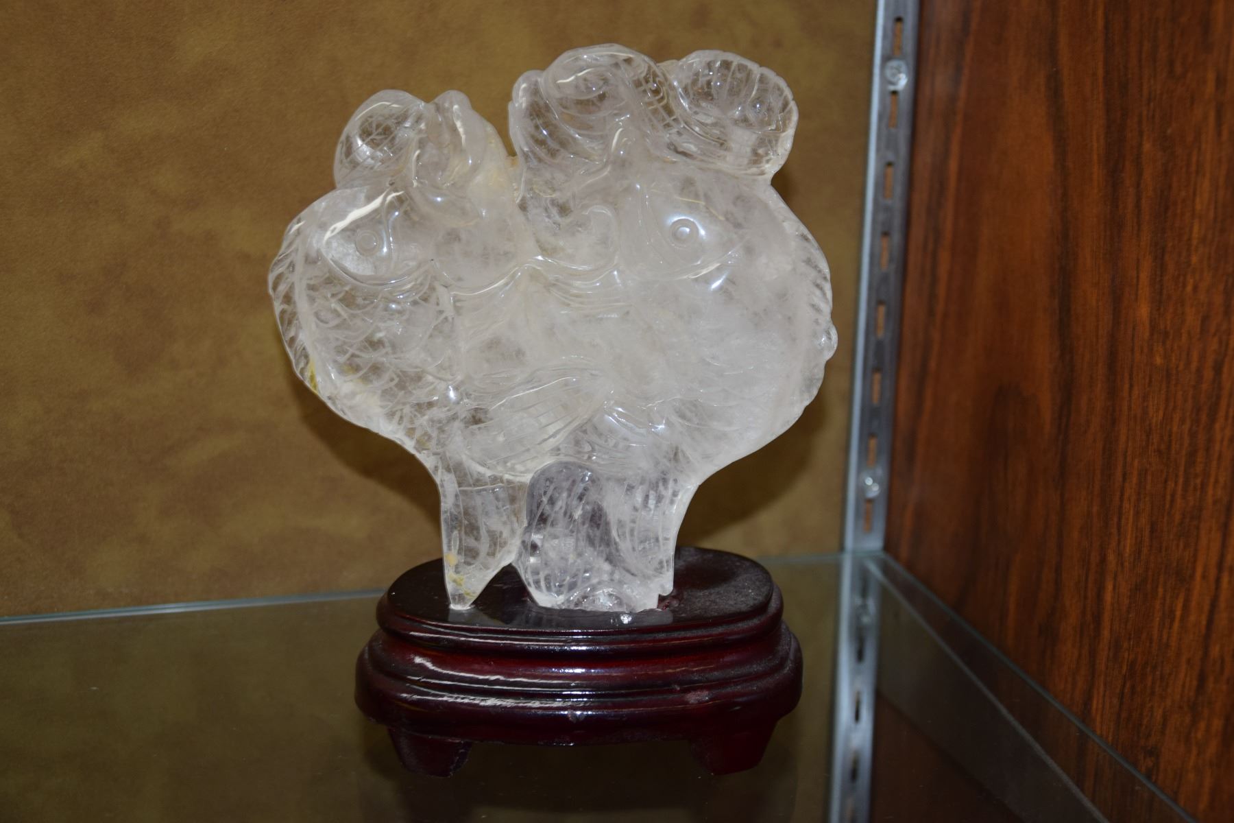 ROCK CRYSTAL DOUBLE FISH CARVING ON STAND (6") (FROM THE COLLECTION OF REV. CLARENCE GUERREIRO)