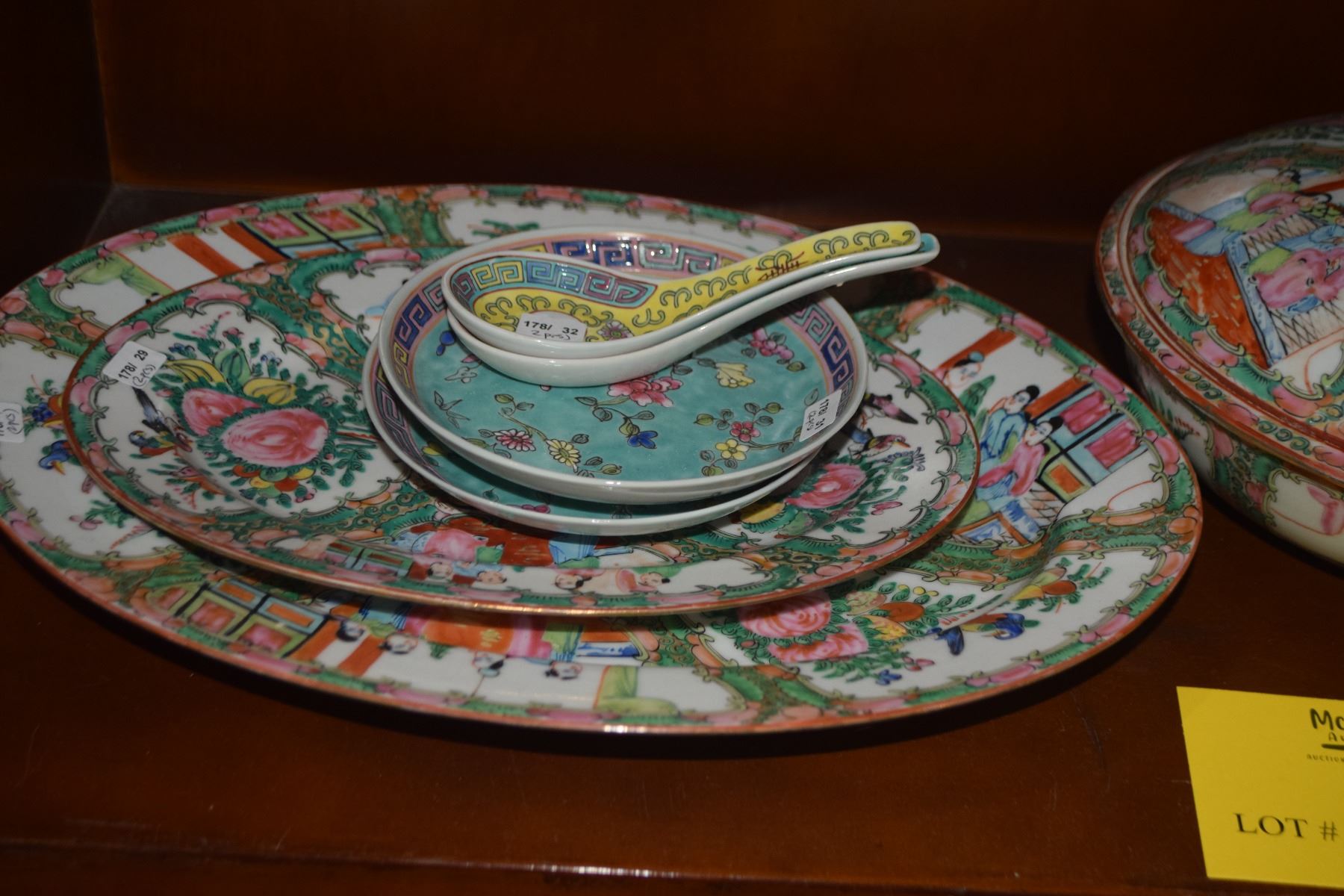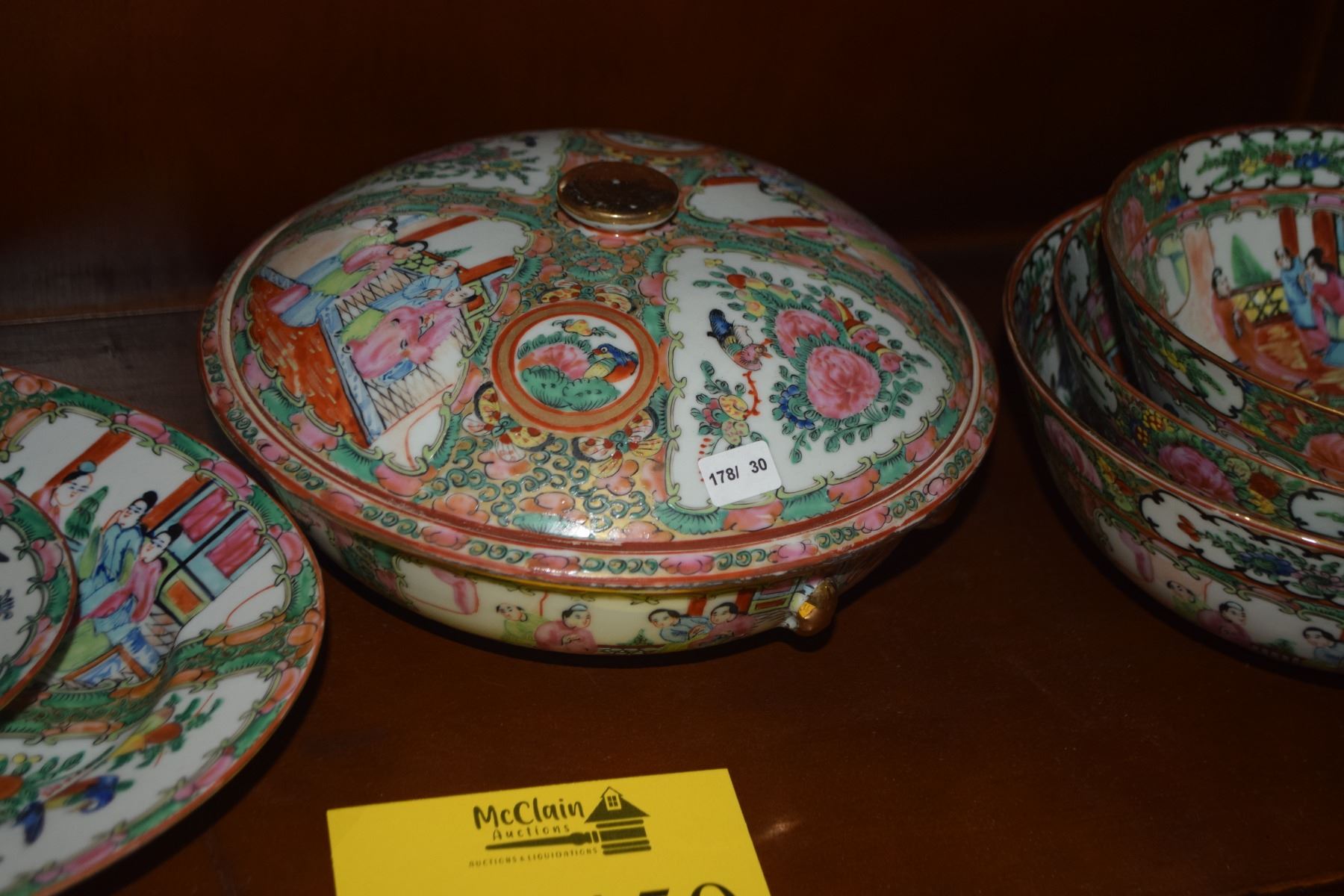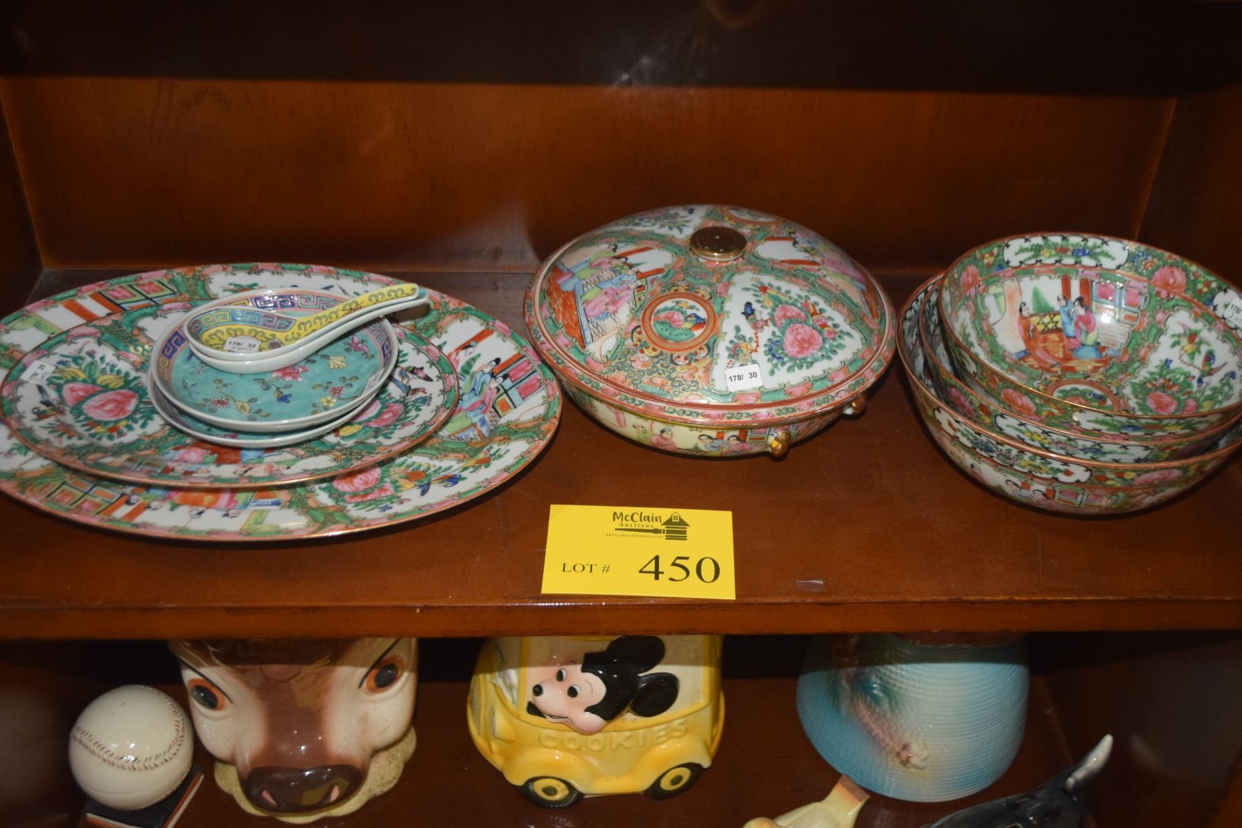ROSE MEDALLION CANTON SERVING BOWLS, COVERED BOWL, PLATTERS, SALAD BOWLS & SOUP SPOONS (10 PCS)