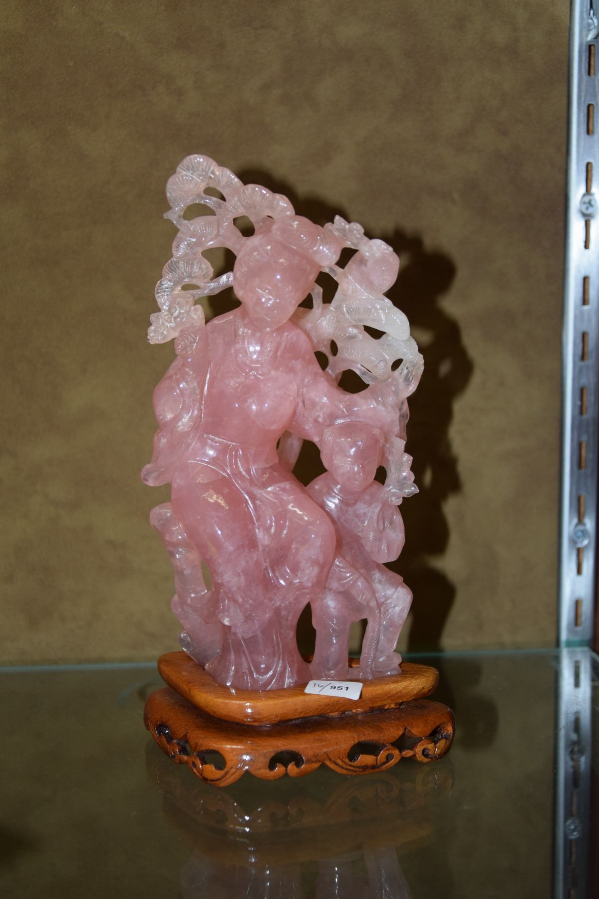 ROSE QUARTZ BEAUTY W/CHILD ON STAND (7 1/4")