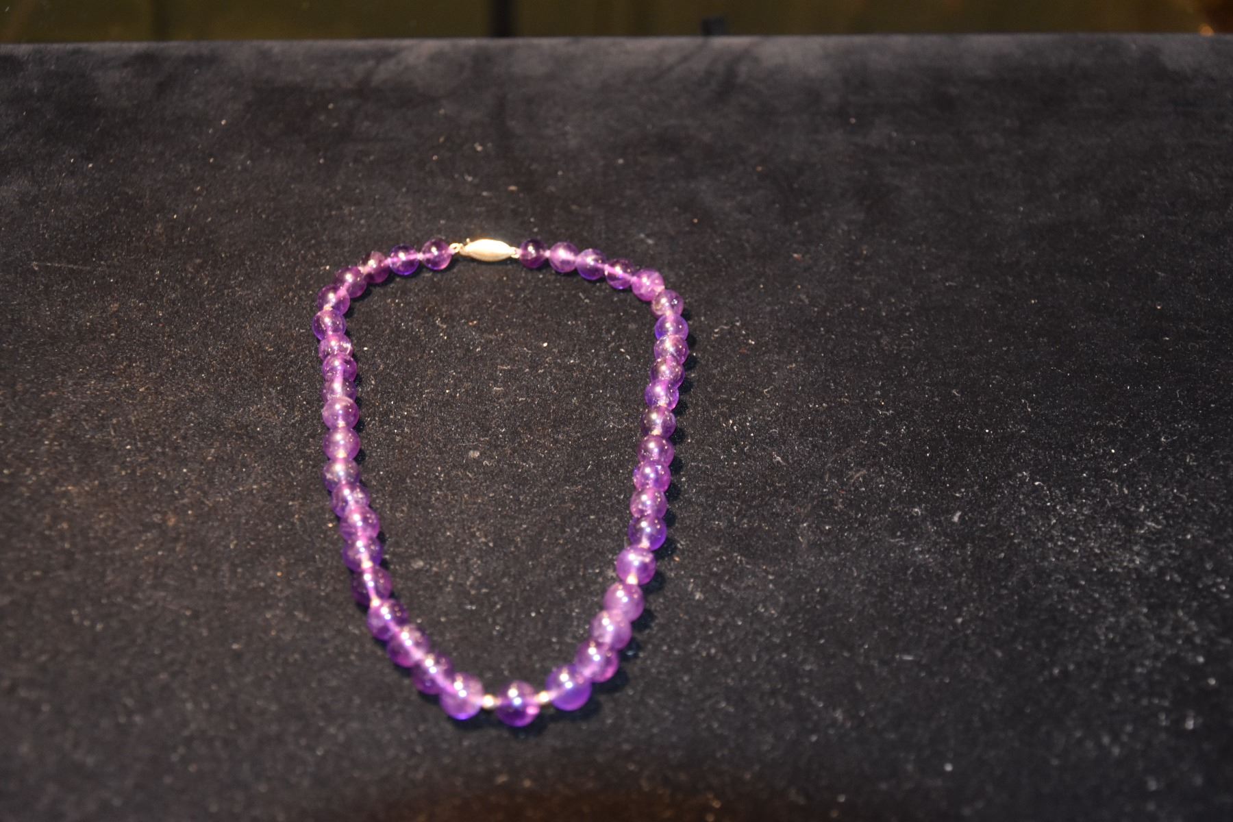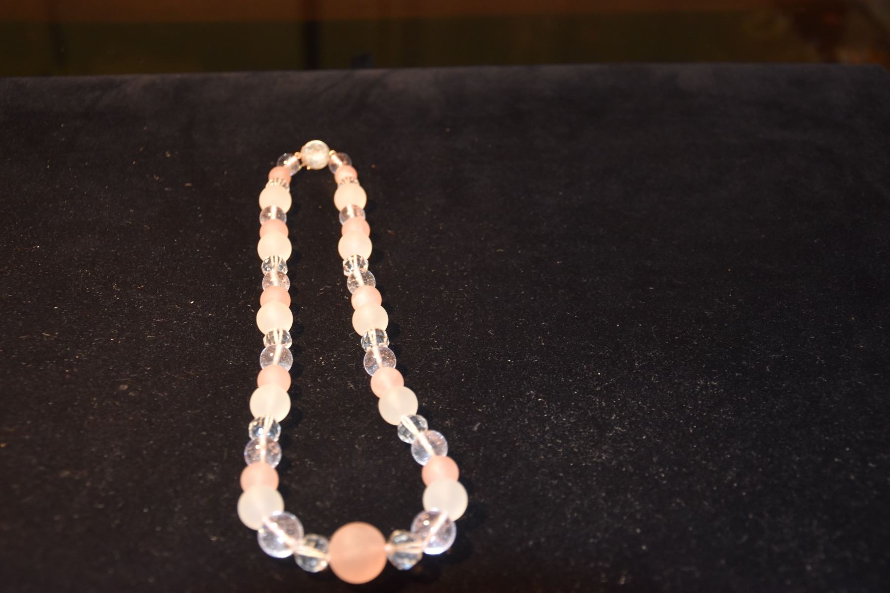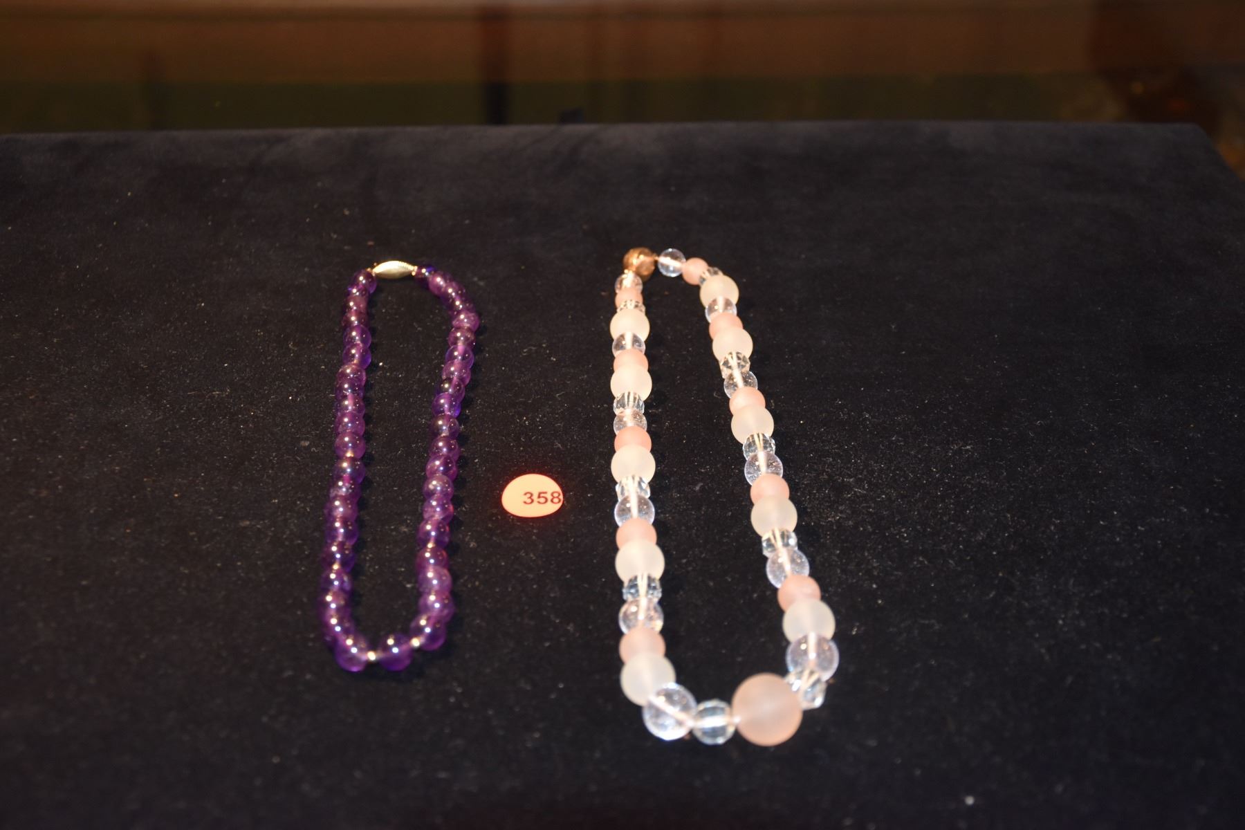 ROSE QUARTZ & CRYSTAL NECKLACE & AMETHYST BEAD NECKLACE W/14K CLASP (2 PCS)
