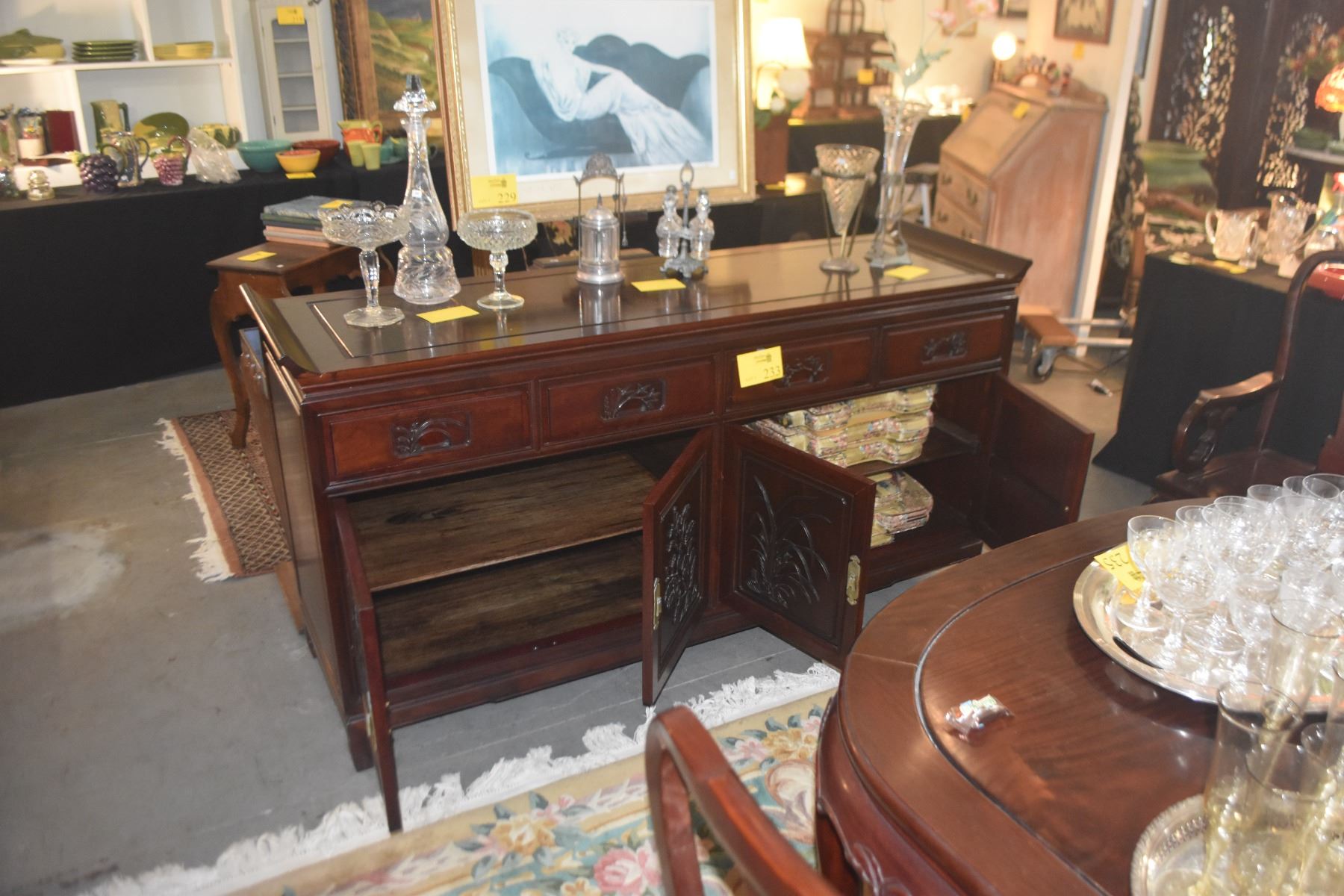 ROSEWOOD BUFFET W/4 DRAWERS & 4 DOORS (68" X 20" X 35 1/2")