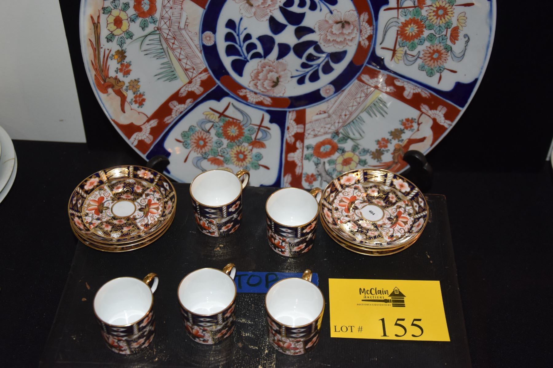 ROYAL CROWN DERBY CUPS & SAUCERS IN FITTED BOX & JAPANESE CHARGER (12 PCS) (DOES NOT INCLUDE STAND)