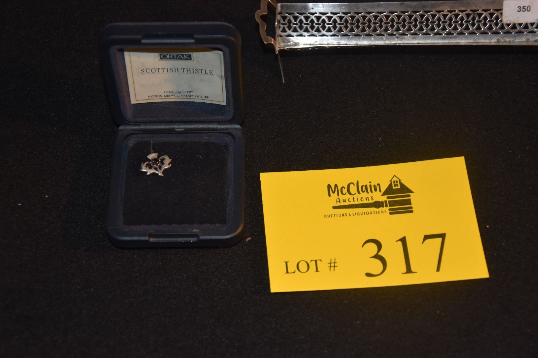 SCOTTISH THISTLE KILT PIN W/PURPLE STONE