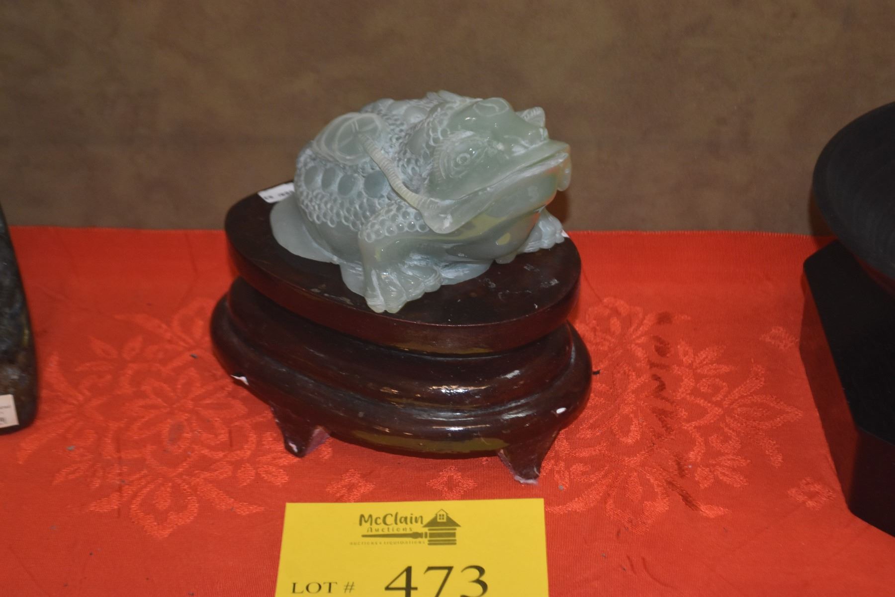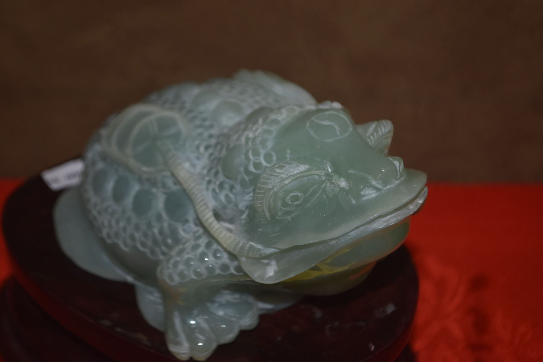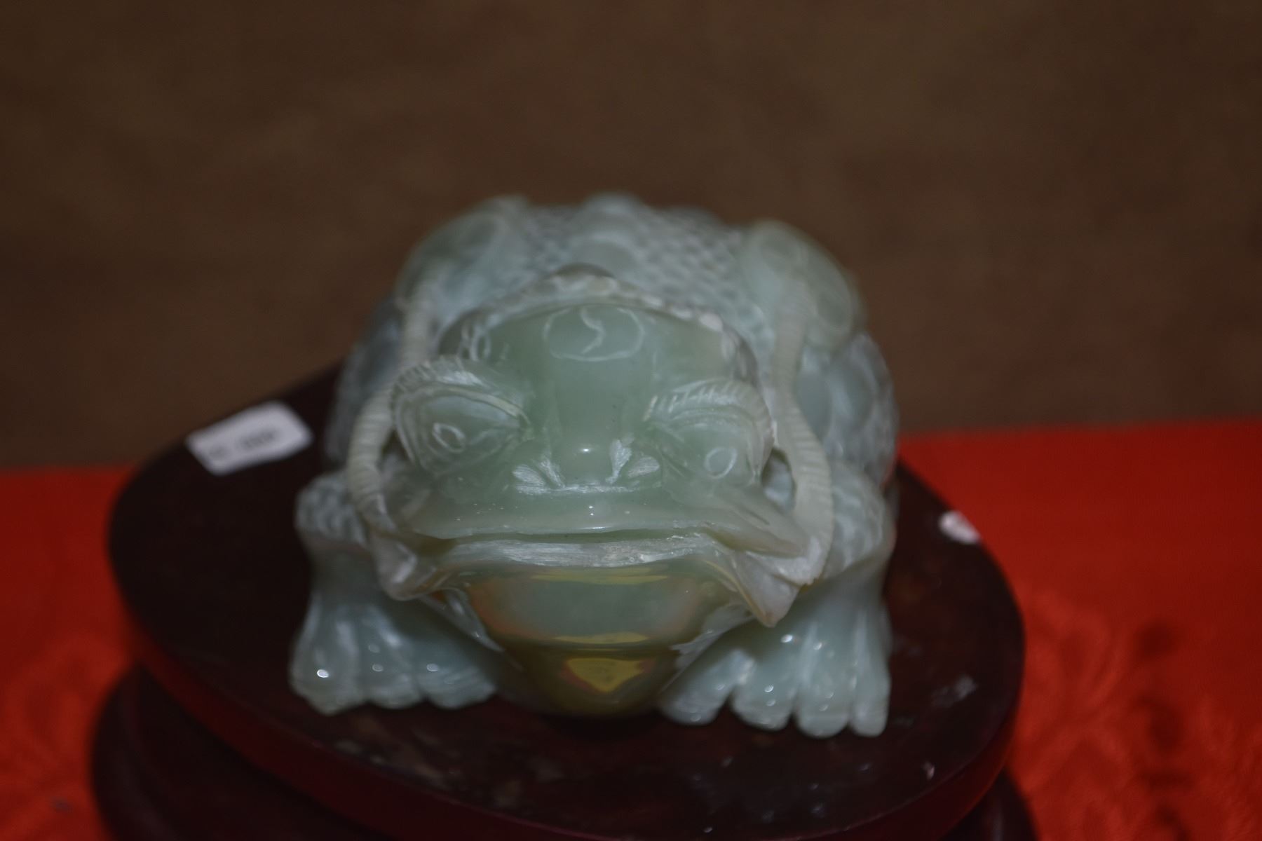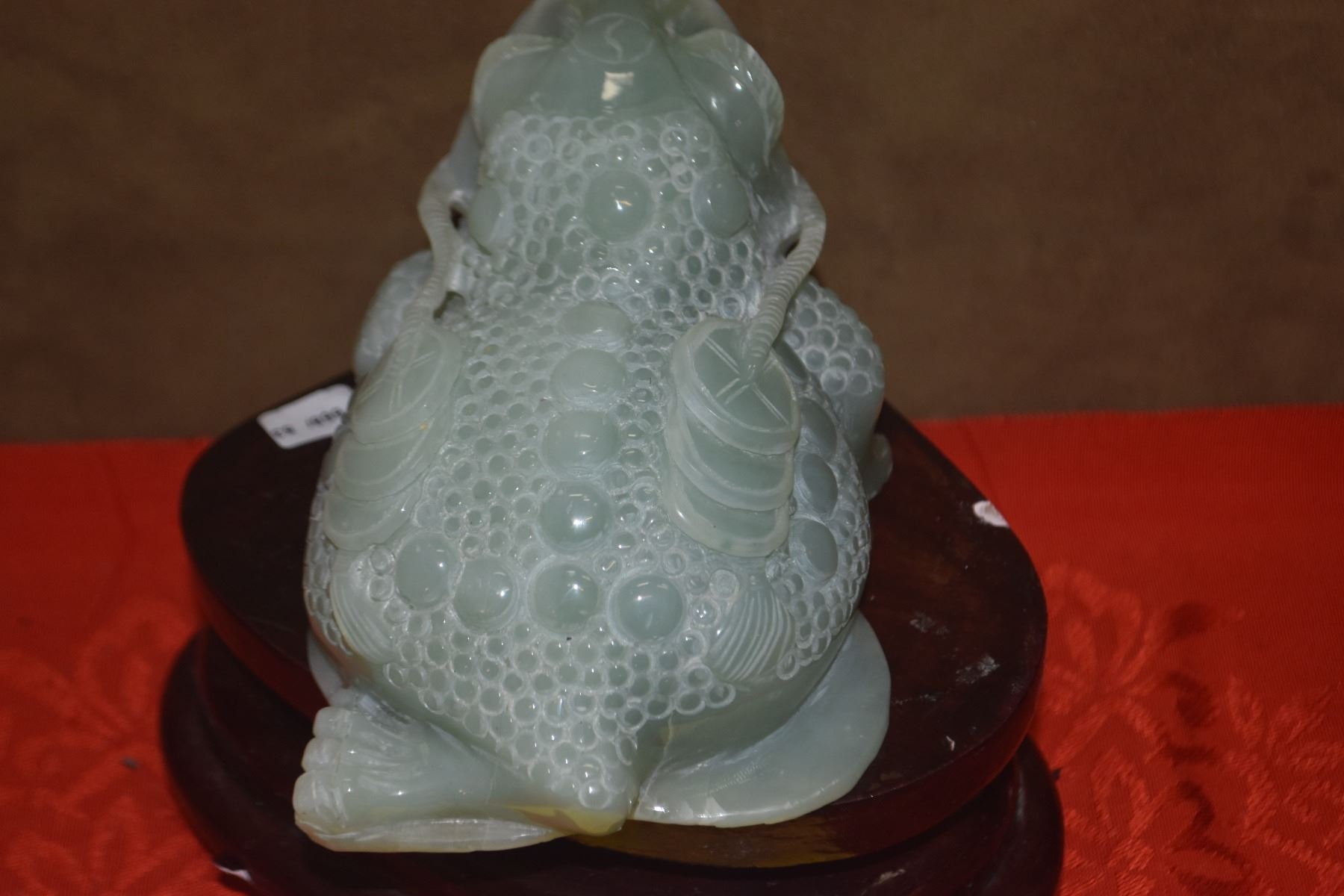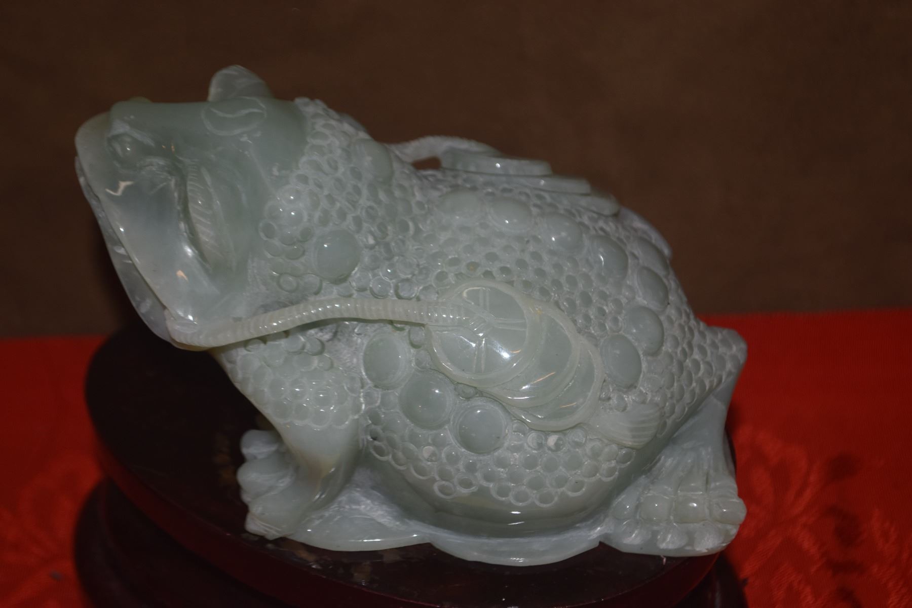 SERPENTINE JADE COIN FROG W/STAND