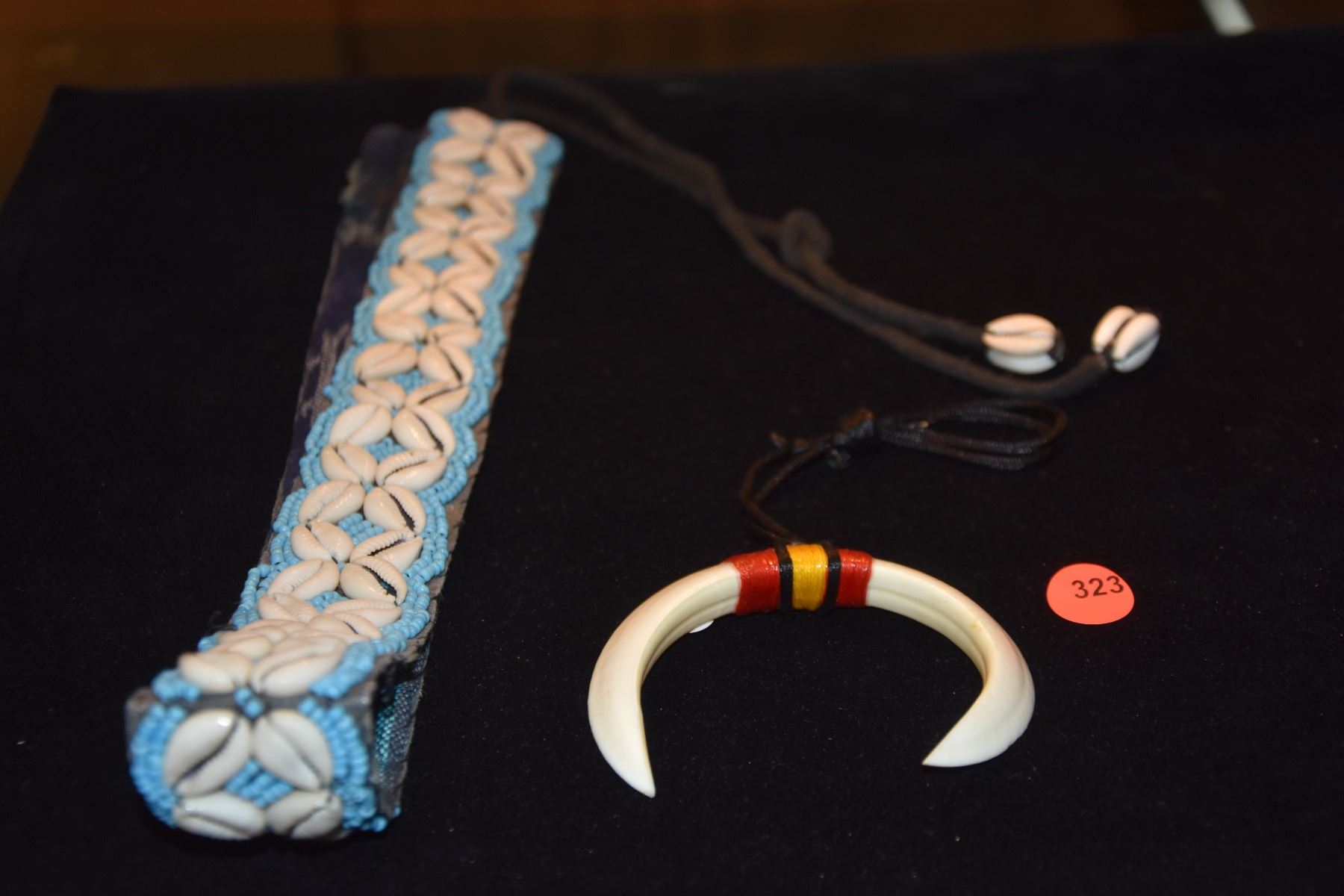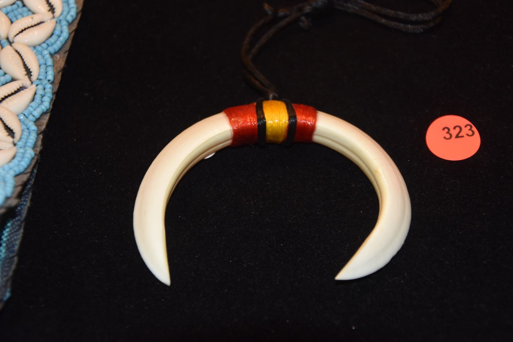 SHELL BEAD BELT & BOAR TUSK PENDANT
