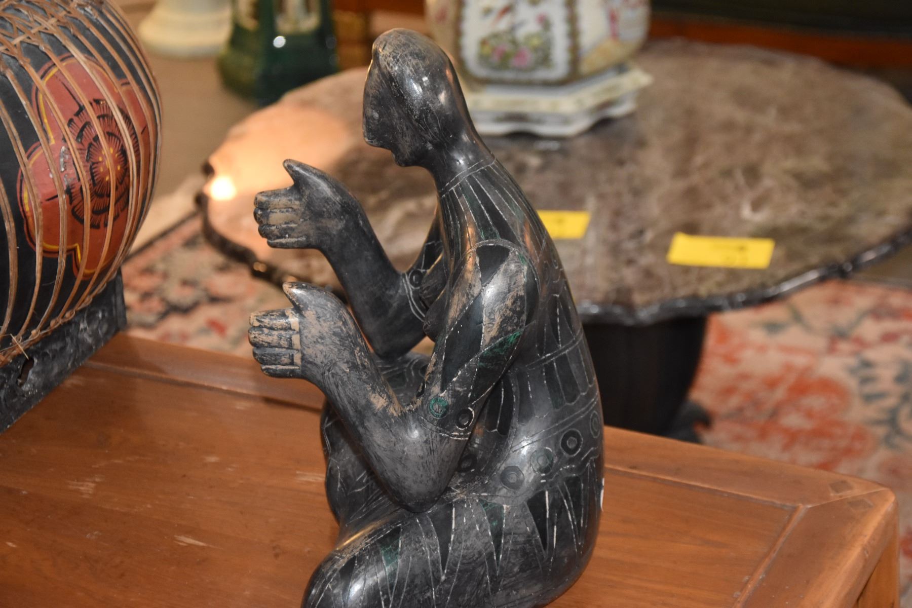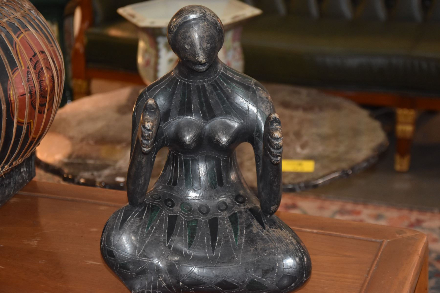 SIGNED MANUEL FELGUEREZ SCULPTURE OF A SEATED WOMAN