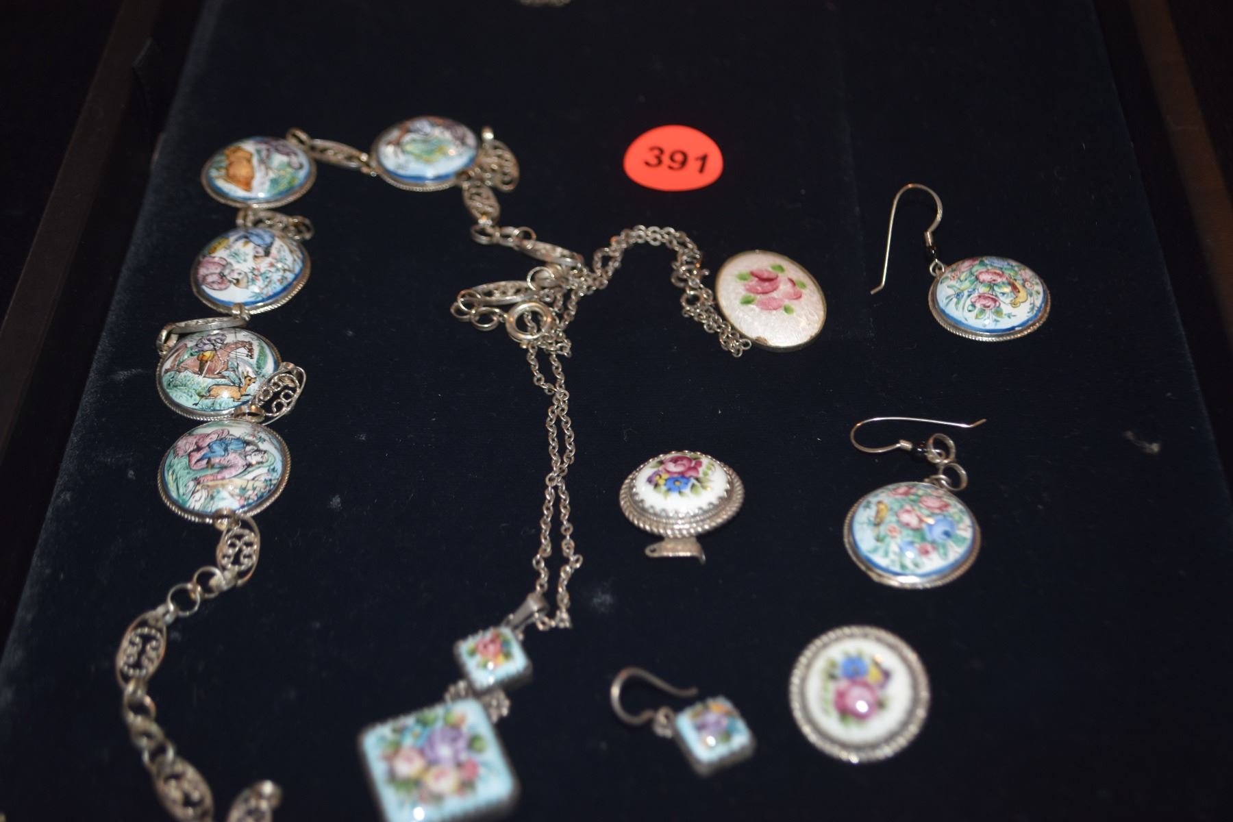 SILVER & ENAMEL JEWELRY (SOME MARKED STERLING) (AS IS)