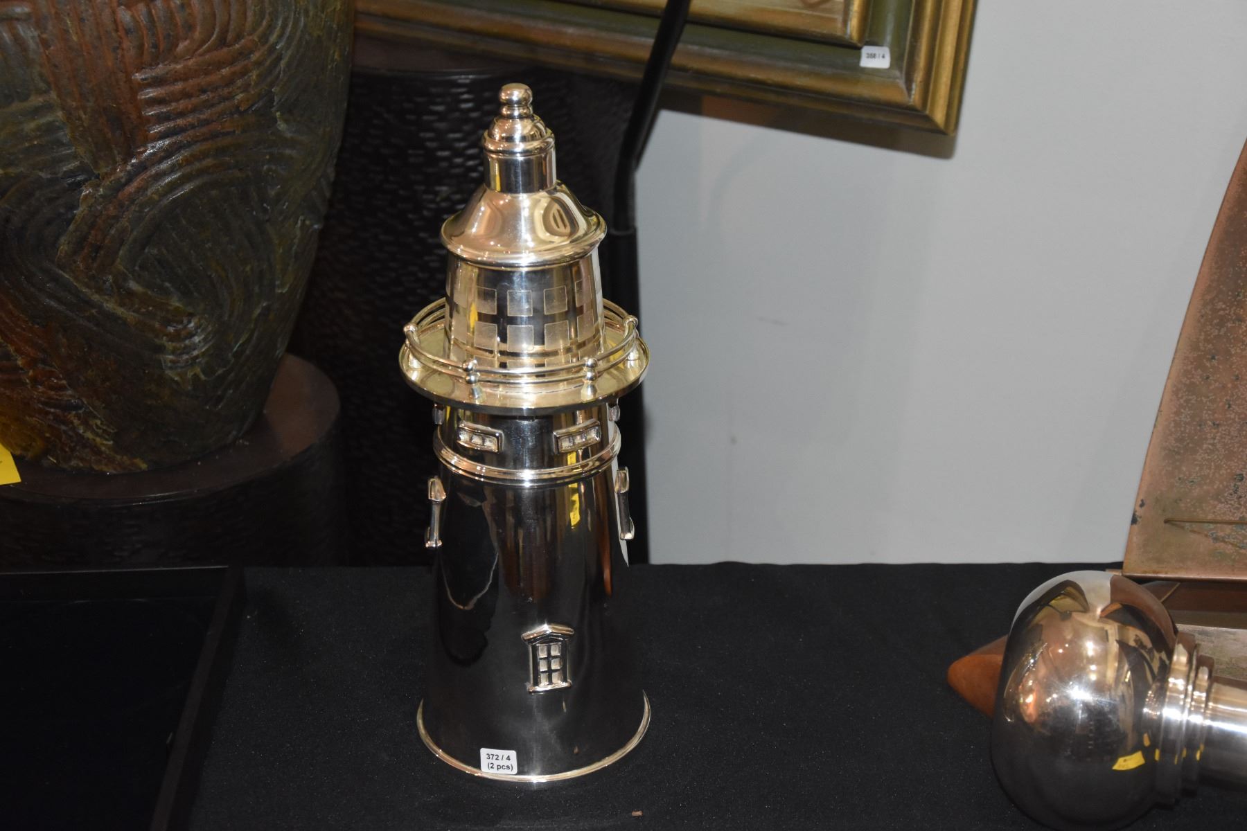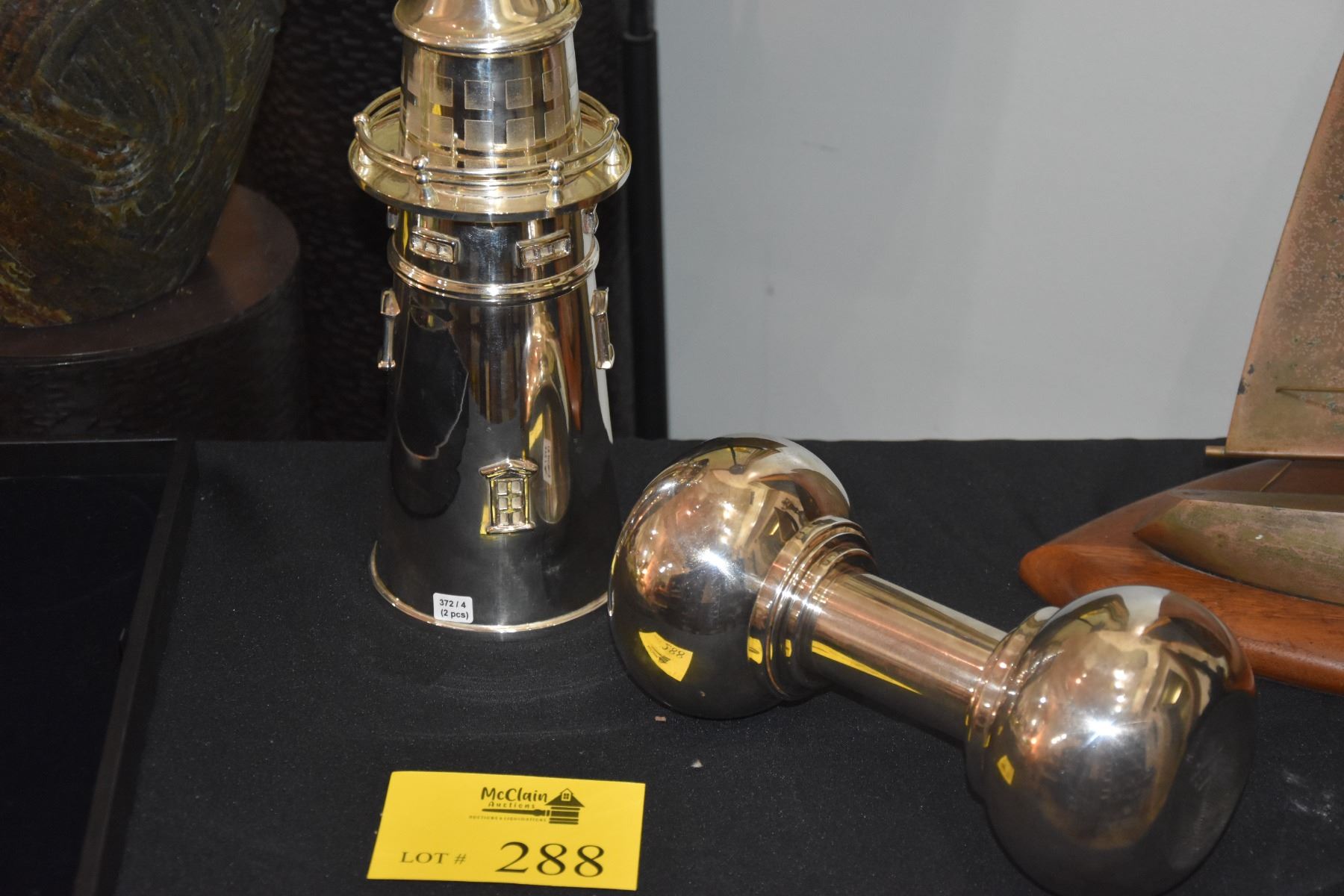 SILVERPLATED COCKTAIL SHAKERS (LIGHTHOUSE & BARBELL) (2 PCS)