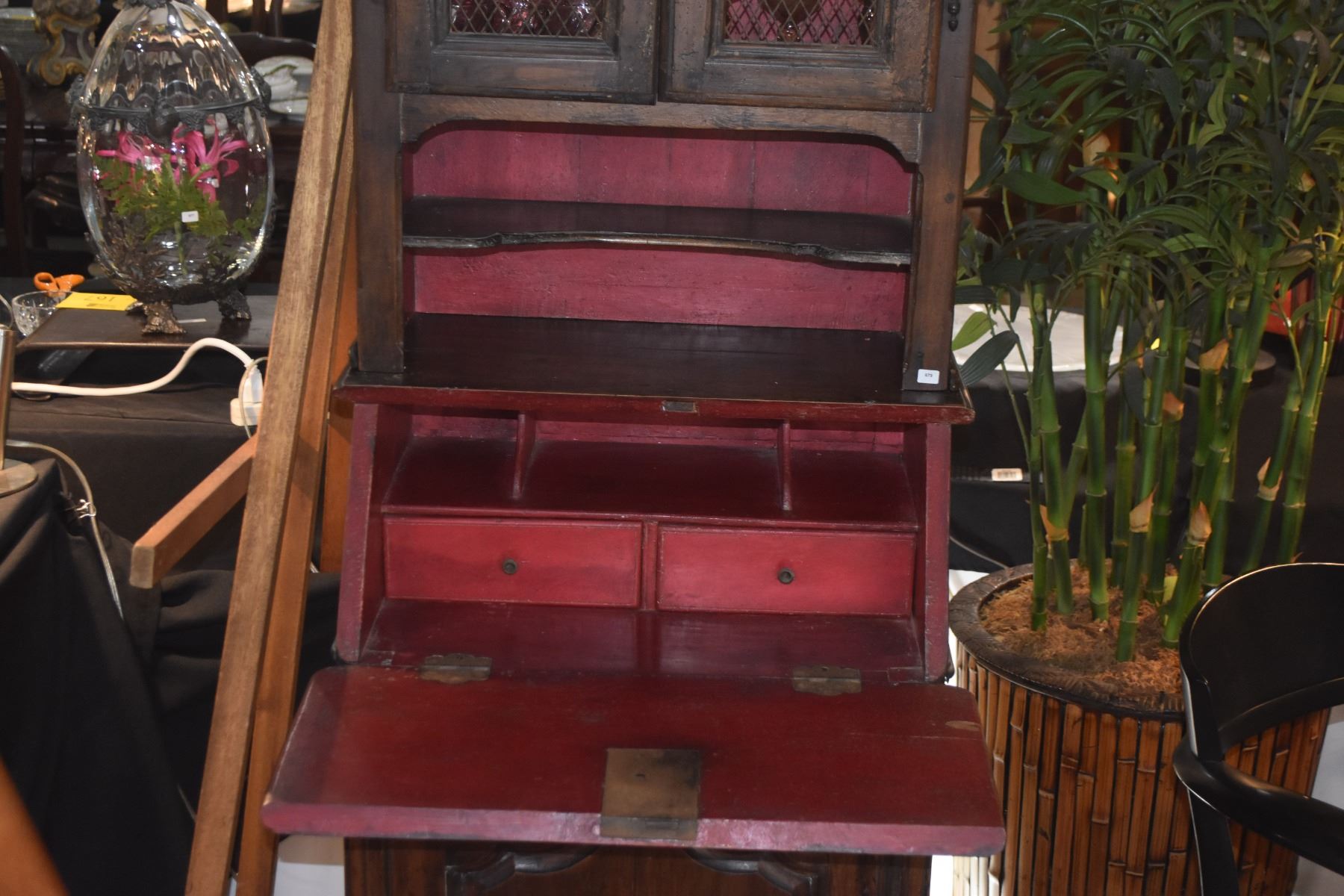 SMALL DROP FRONT SECRETARY W/HUTCH (2 SECTIONS) (23" X 15 1/2" X 79")