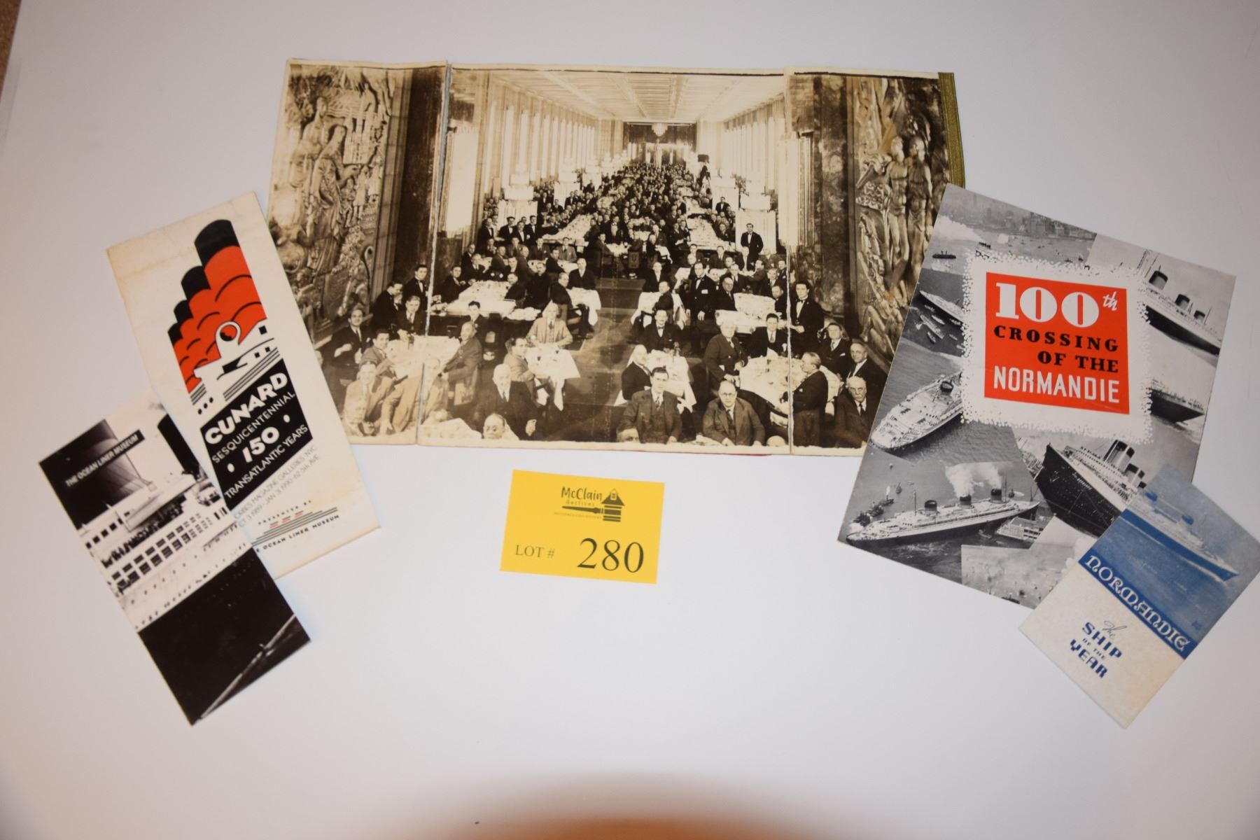 SS NORMANDIE BROCHURES & PHOTOGRAPH OF THE DINING SALON (5 PVS)