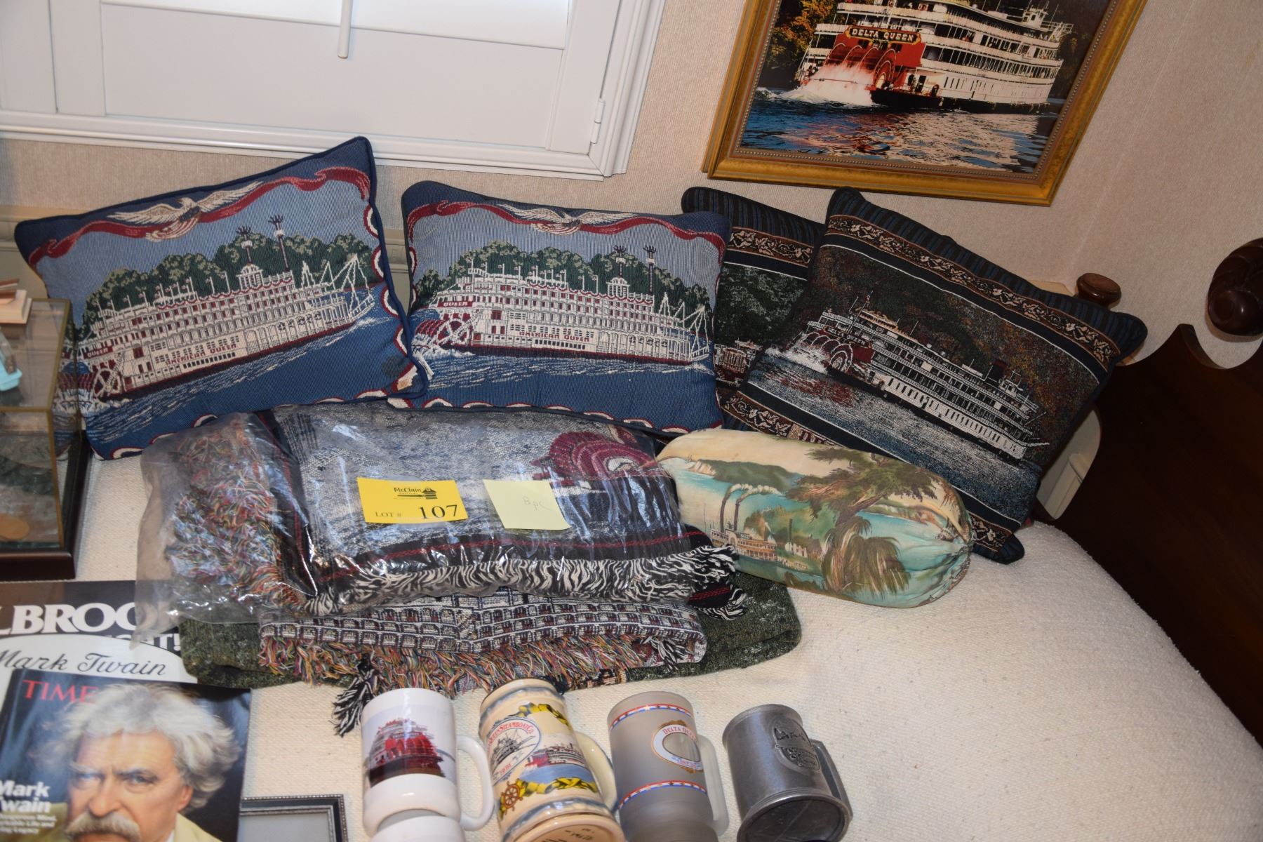 STEAMBOAT THEMED PILLOWS & THROWS (8 PCS)