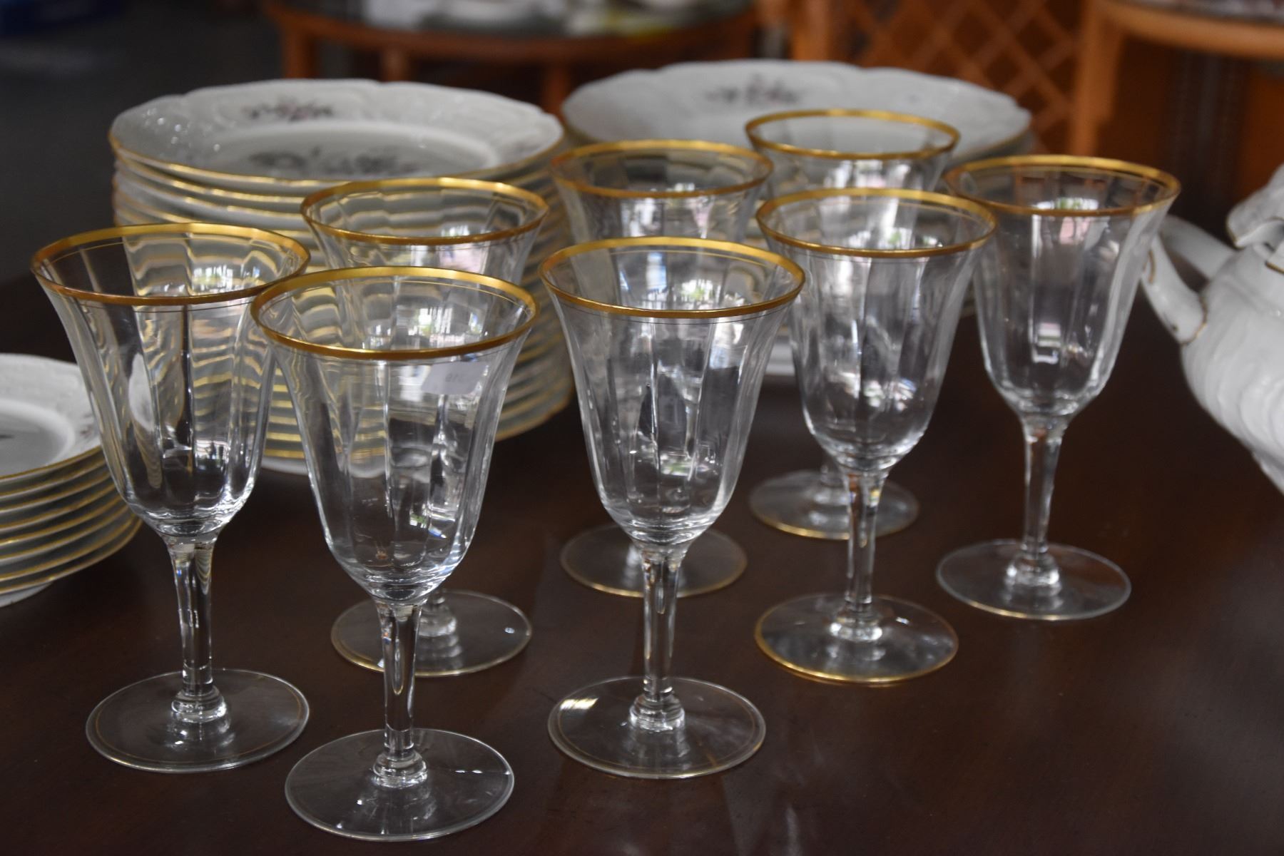 STEMMED WINE GLASSES W/GOLD RIMS (8 PCS)