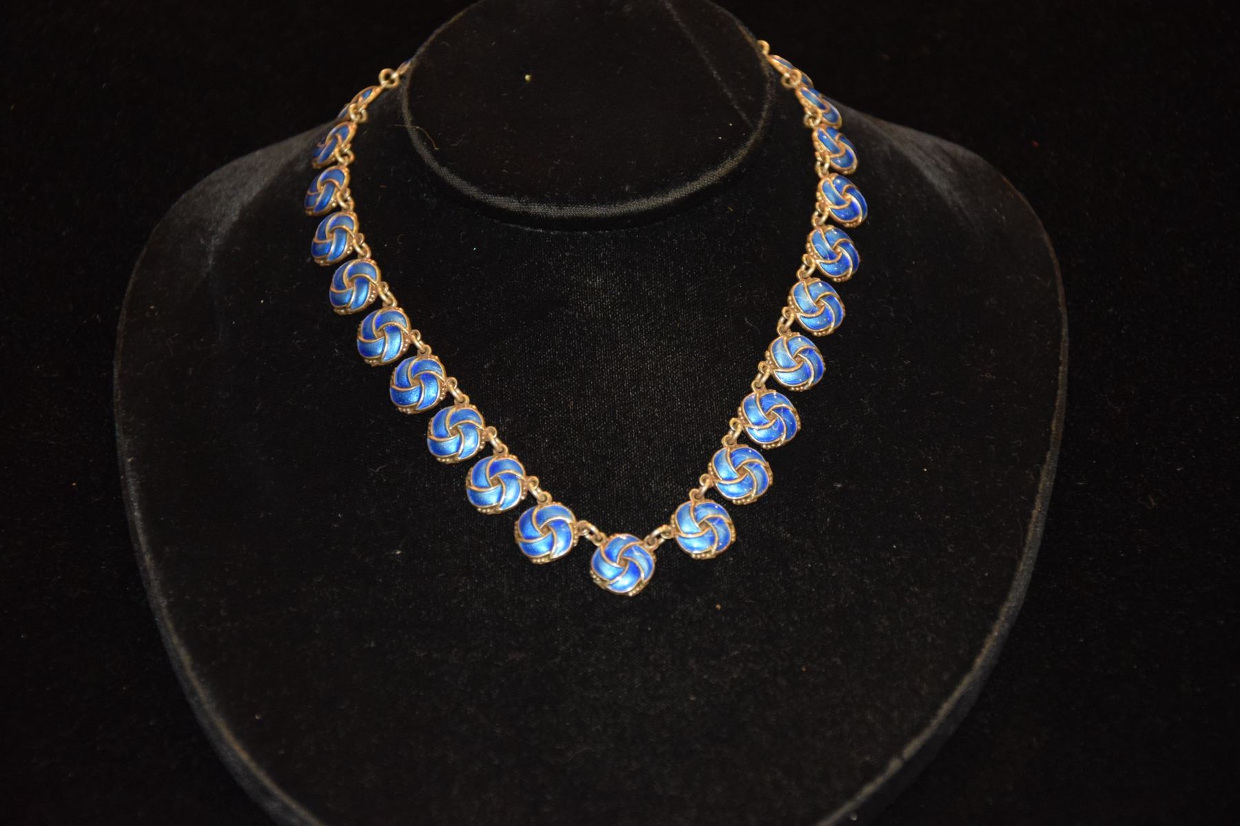 STERLING SILVER BLUE ENAMEL NECKLACE; MEKA, DENMARK