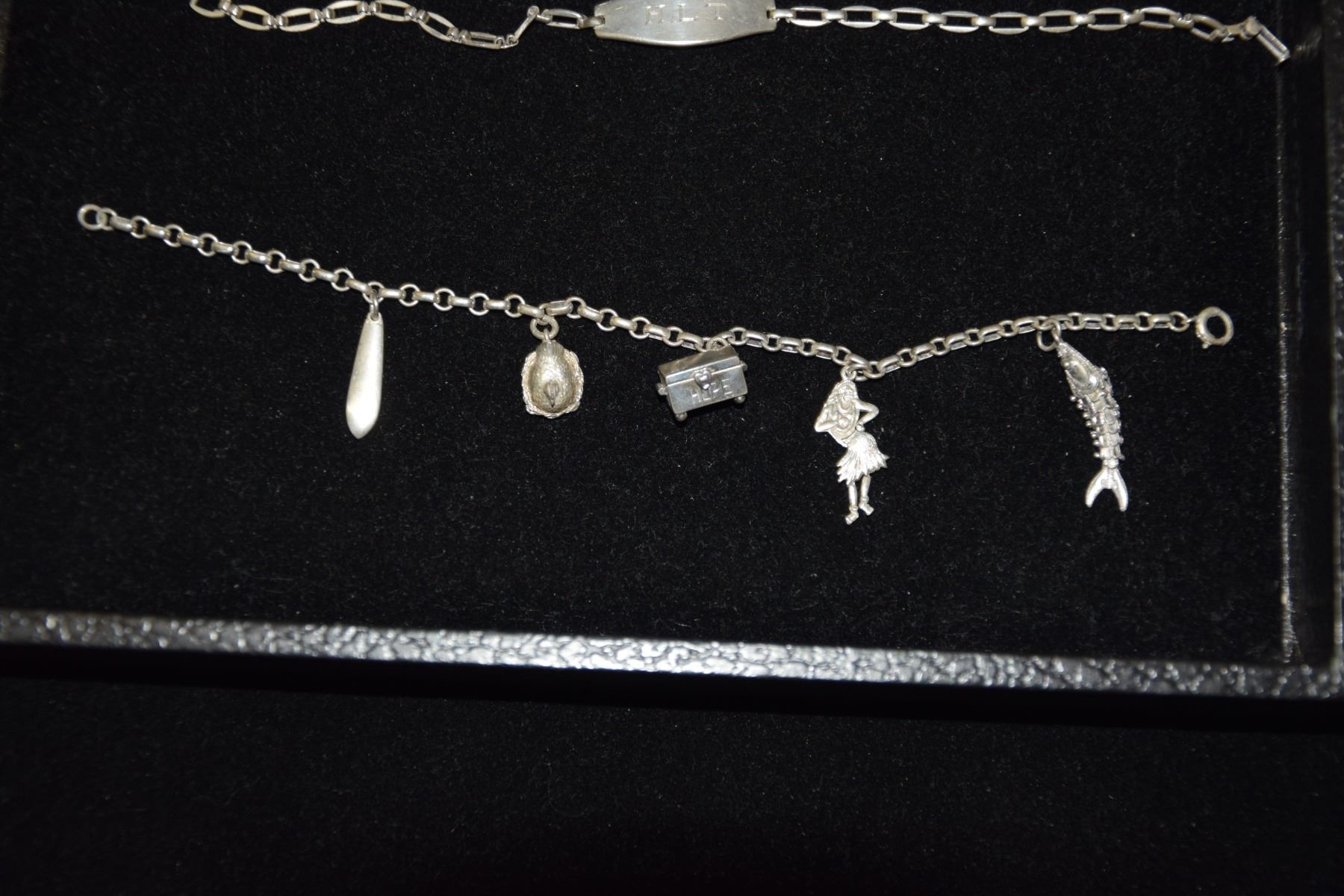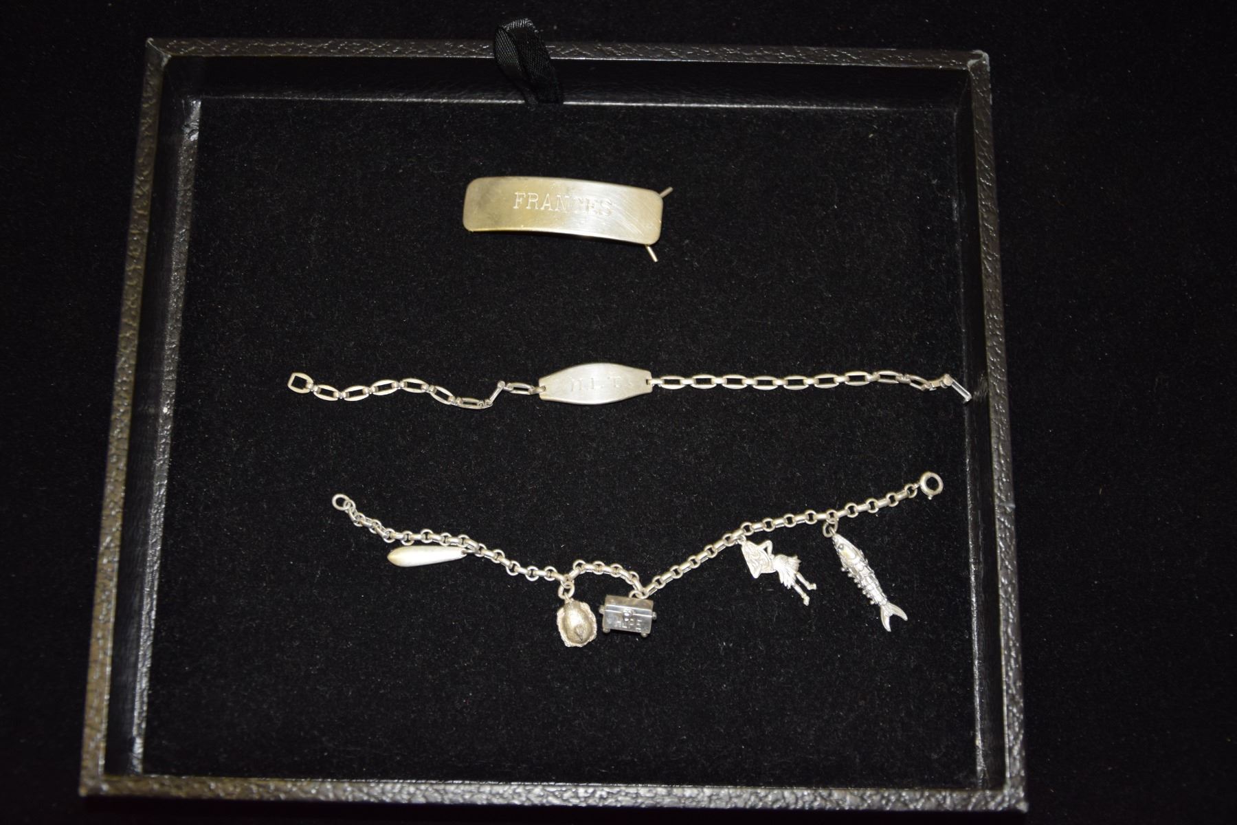 STERLING SILVER CHARM BRACELET, ID BRACELET & BARRETTE, (3 PCS)