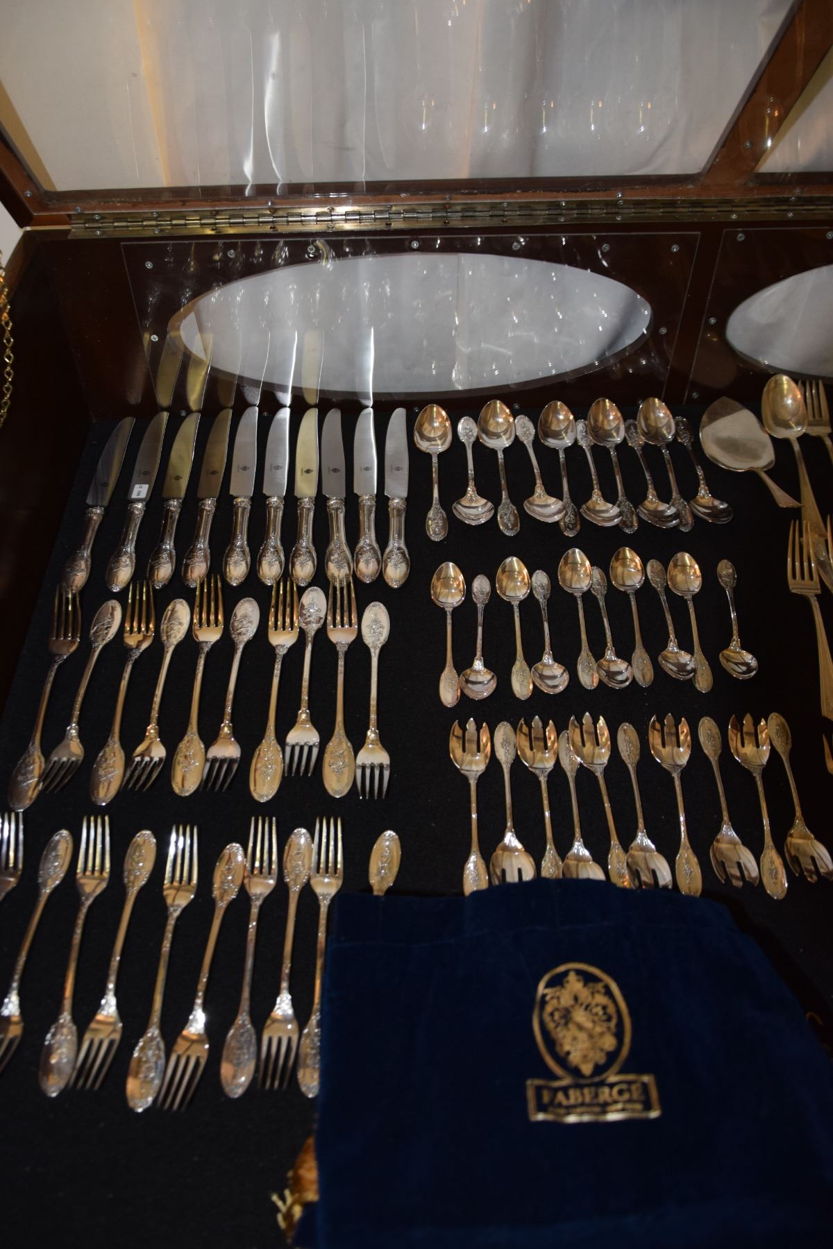 STERLING SILVER FLATWARE, "OPERA RUSSE" PATTERN BY FABERG'E (2,397.6 GRAMS W/O KNIVES) (60 PCS)