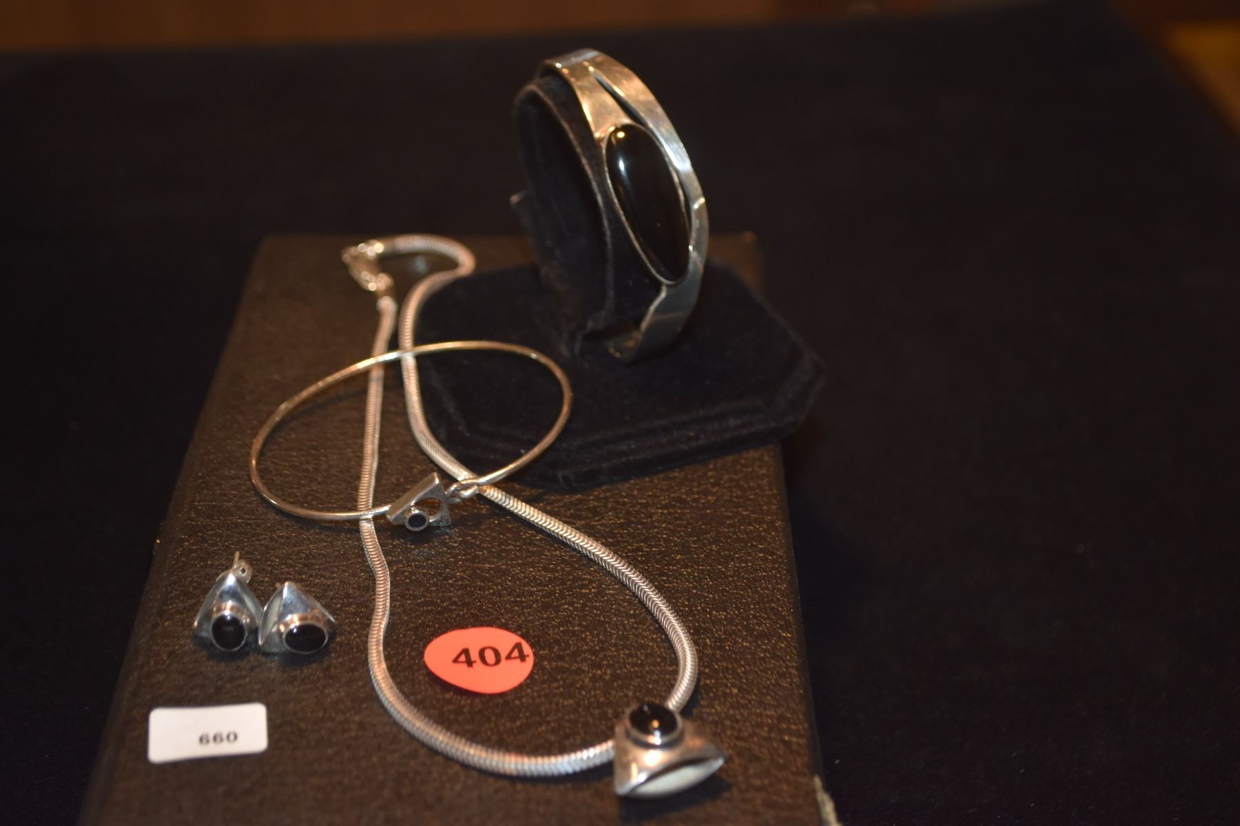 STERLING SILVER MODERN NECKLACE, BRACELET & EARRINGS (55.6 GTW)(4 PCS)