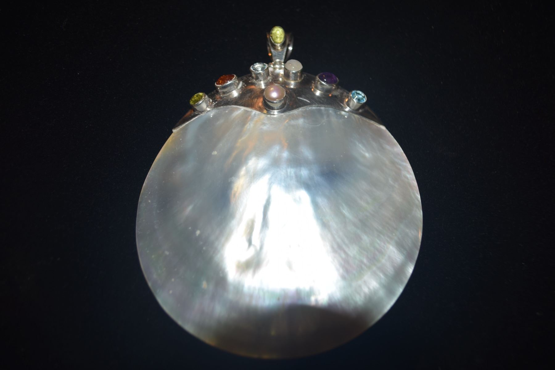 STERLING SILVER, MOTHER OF PEARL & GEMSTONE PENDANT