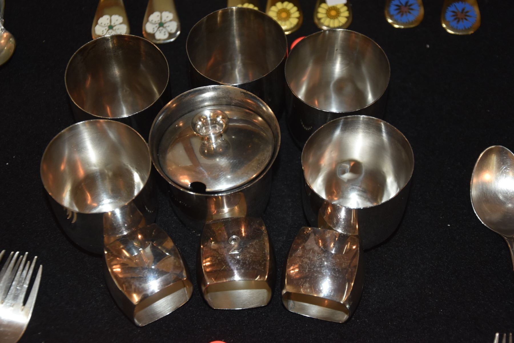 STERLING SILVER NAPKIN RINGS, STERLING COVERED MUSTARD JAR & WILKENS 835 CUPS (5) (491 GTW) (9 PCS)