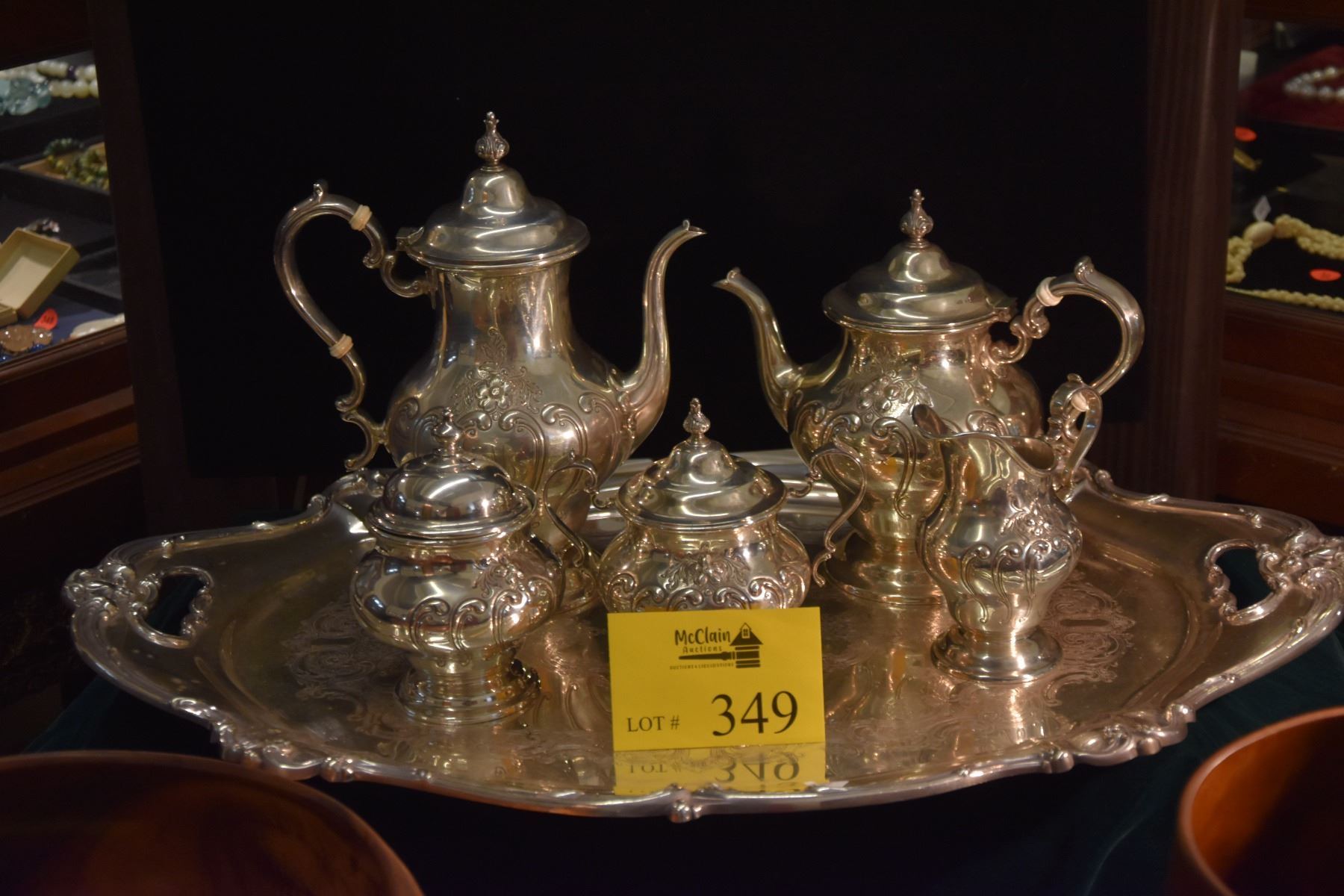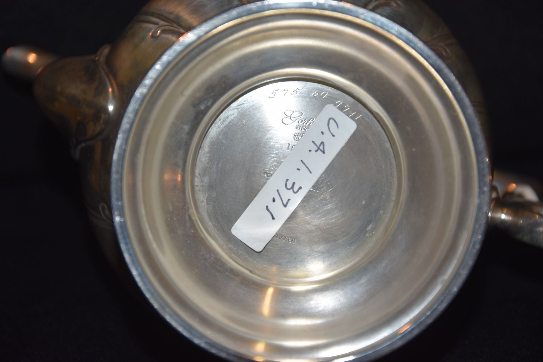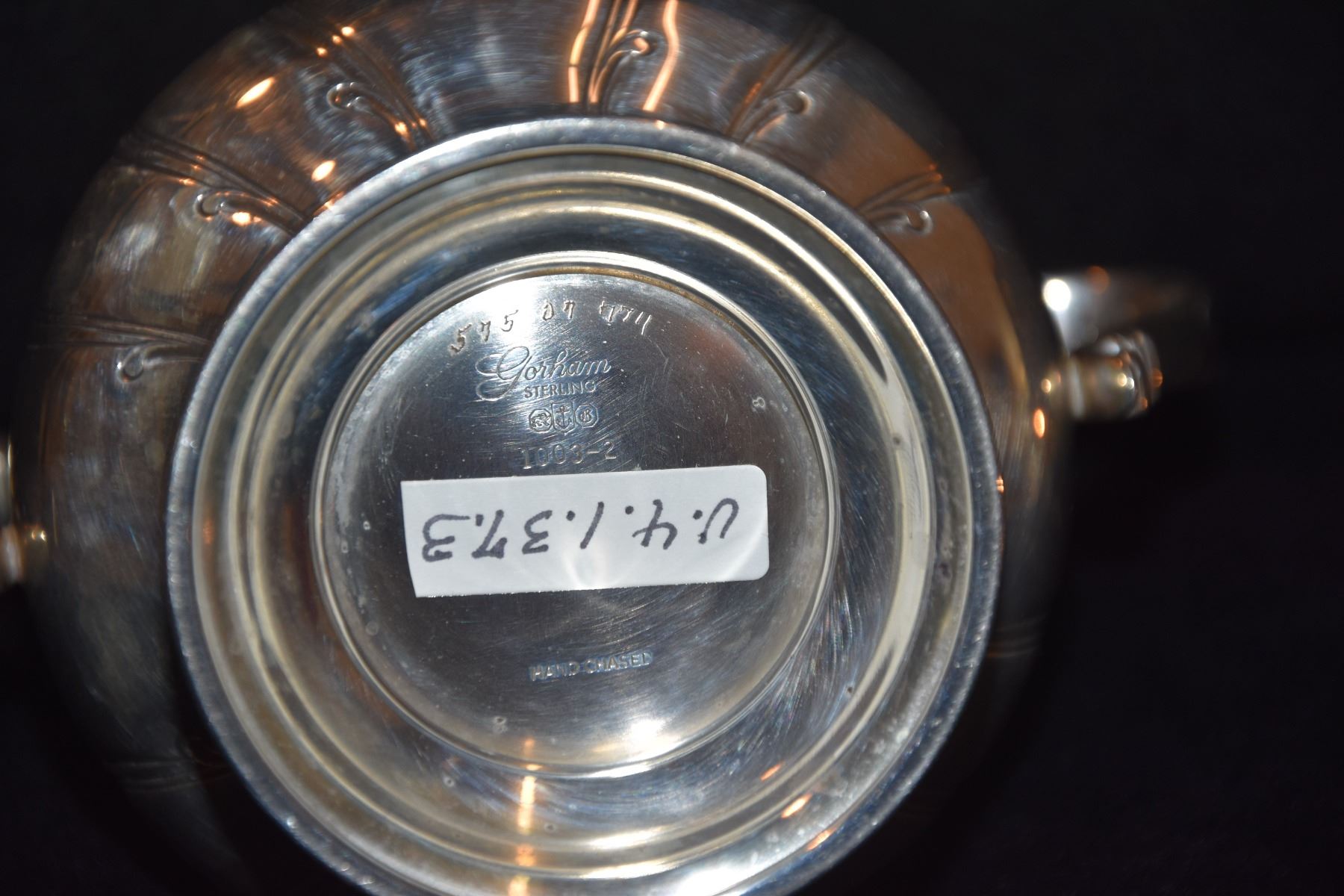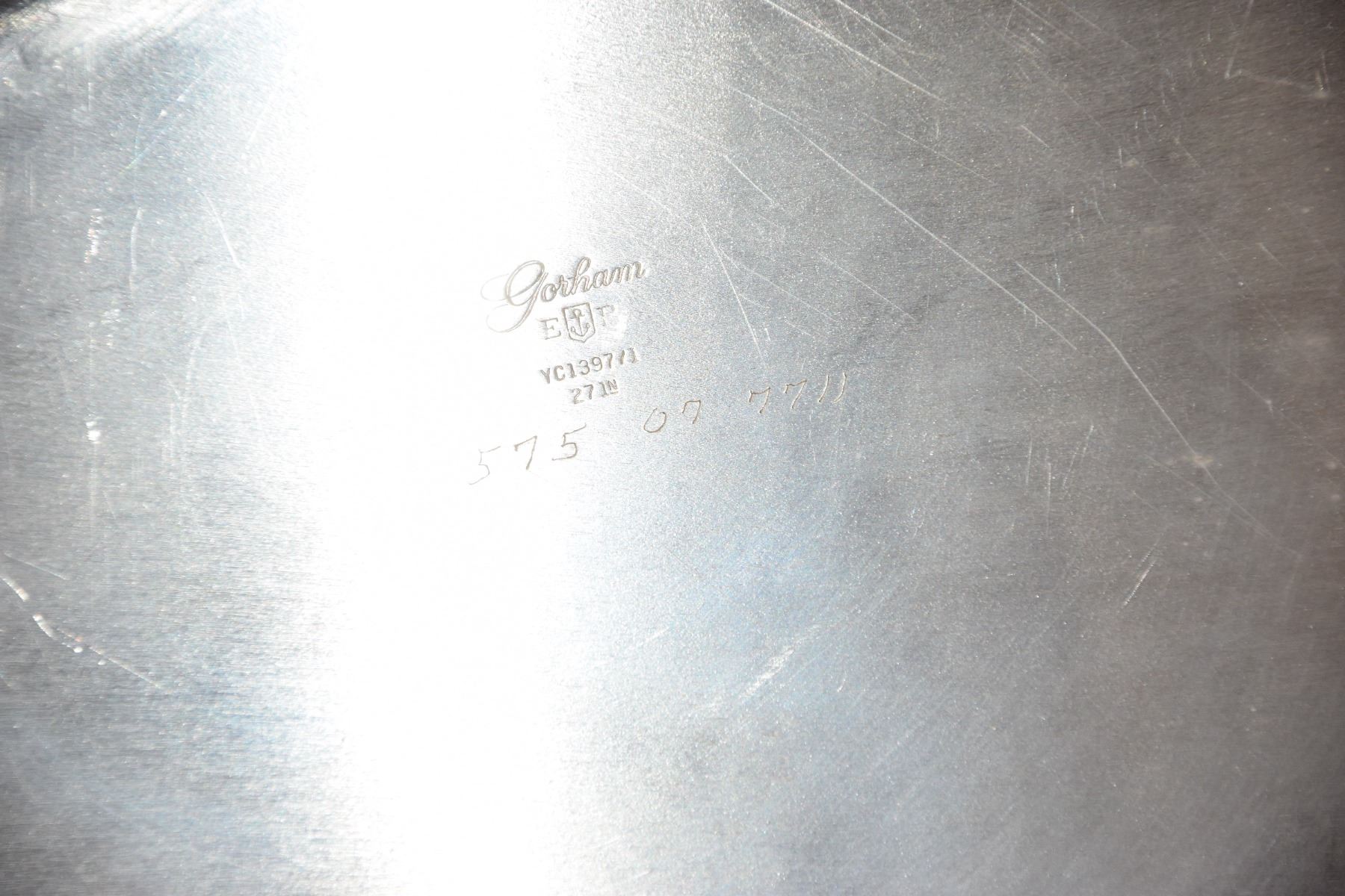 STERLING SILVER TEA SET, GORHAM "CHANTILLY" W/SILVER PLATE TRAY (2,833 GTW) (6 PCS)