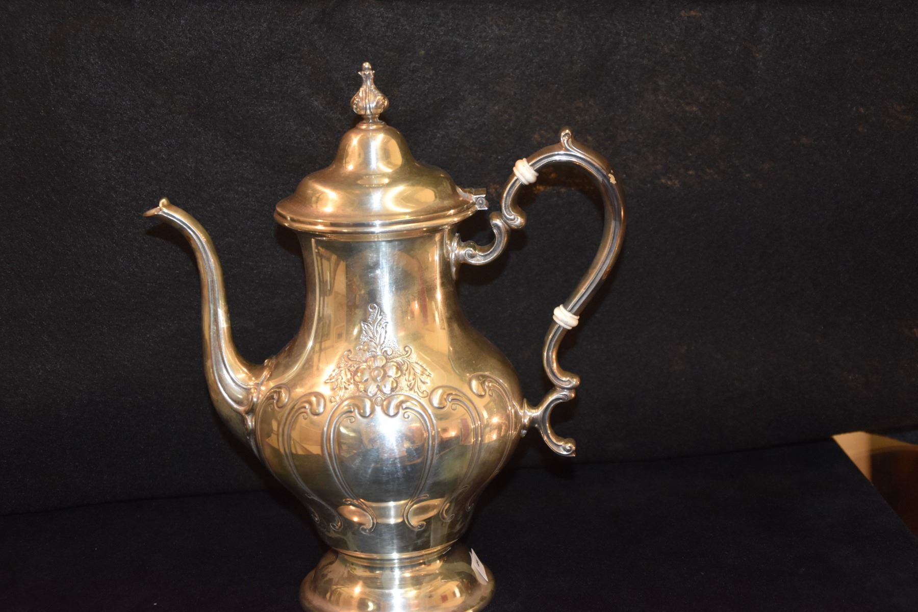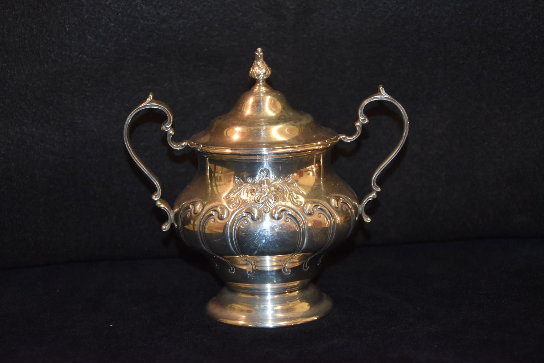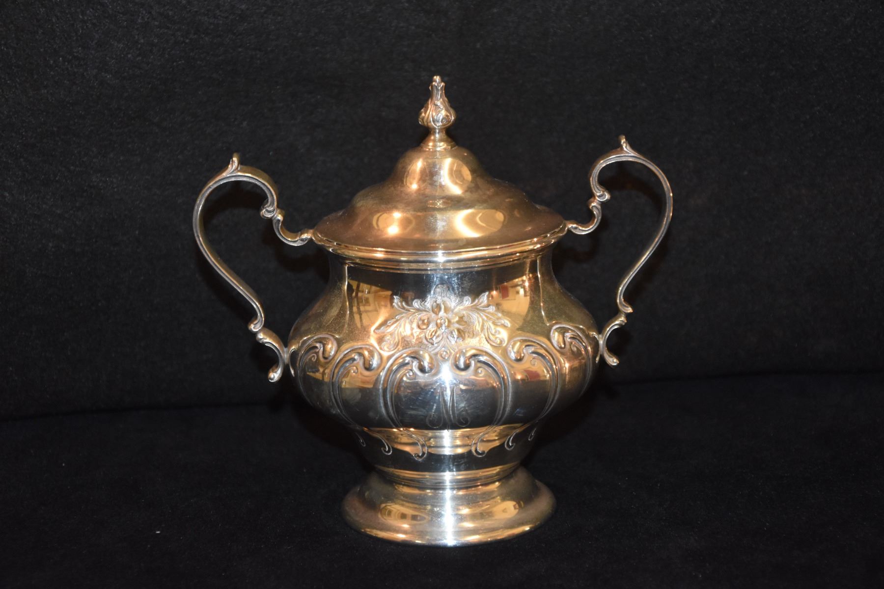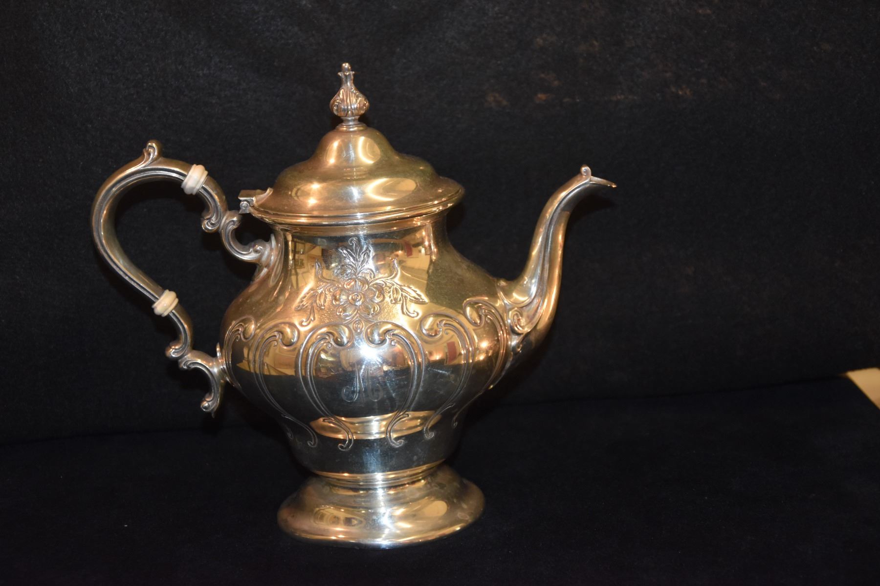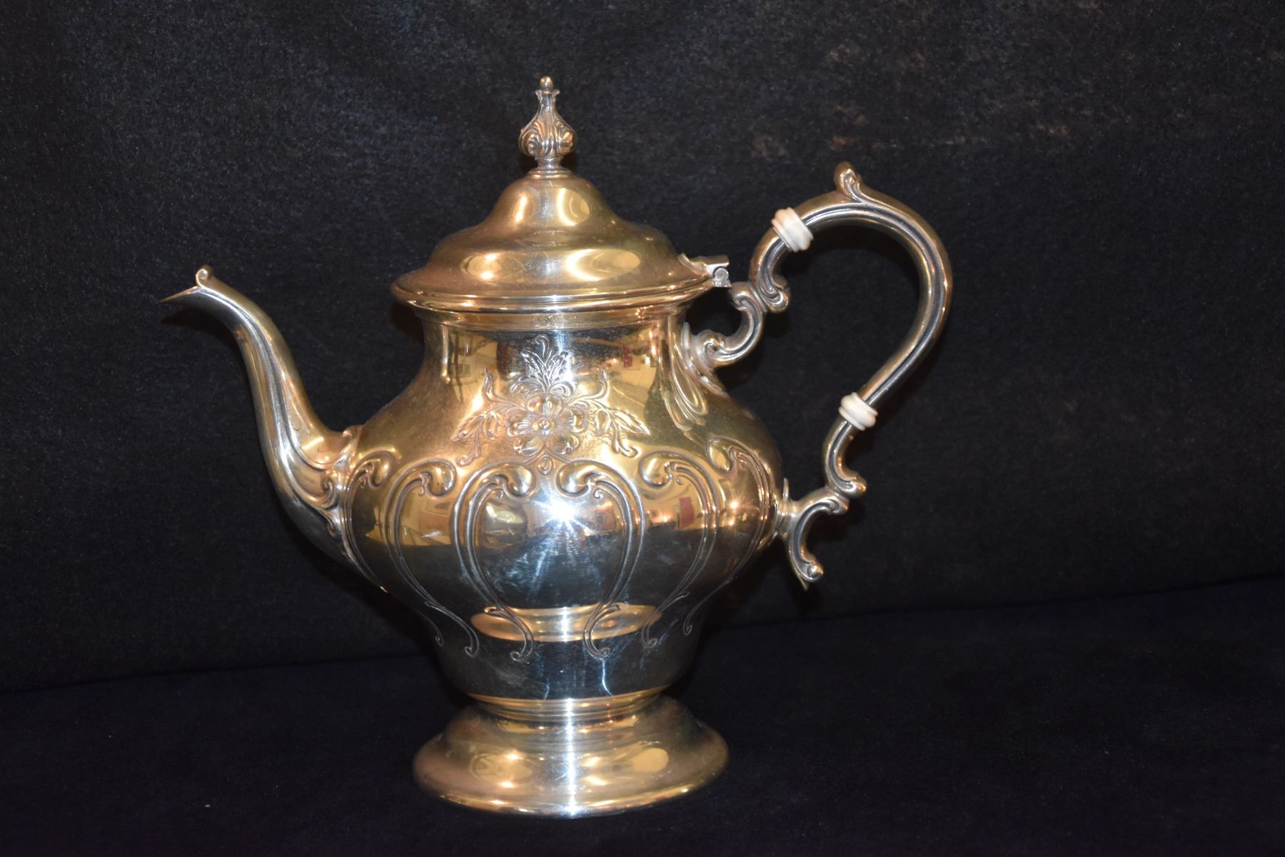 STERLING SILVER TEA SET, GORHAM "CHANTILLY" W/SILVER PLATE TRAY (2,833 GTW) (6 PCS)