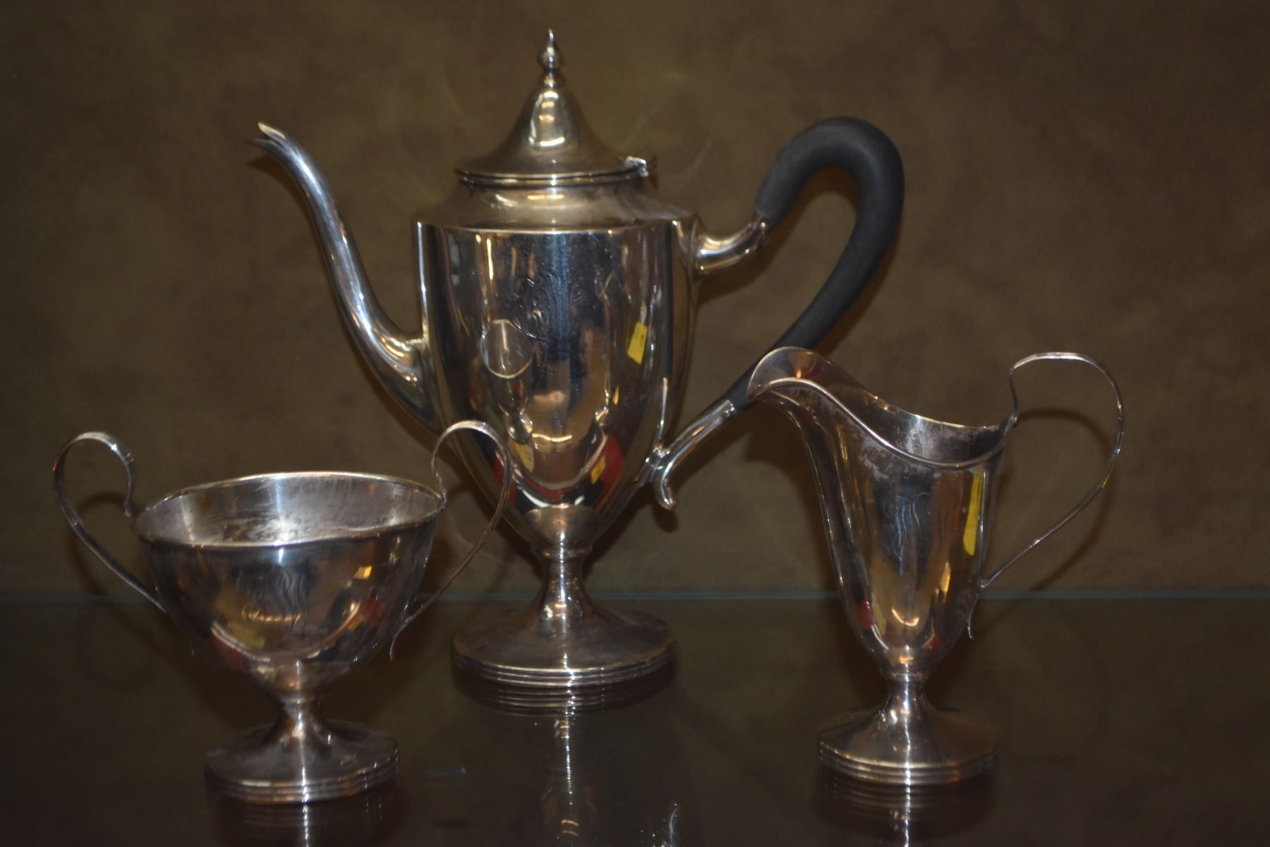 STERLING SILVER TEAPOT, CREAMER & SUGAR BOWL (428.4 GTW) (3 PCS)