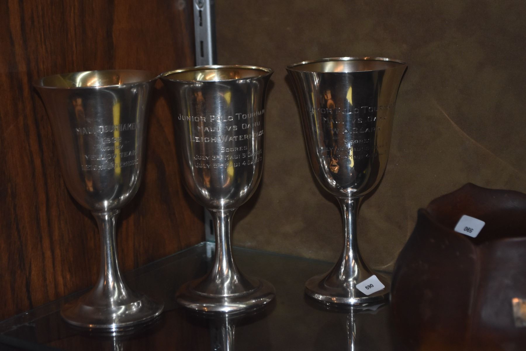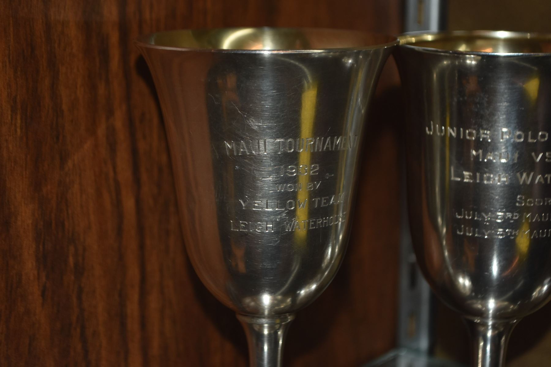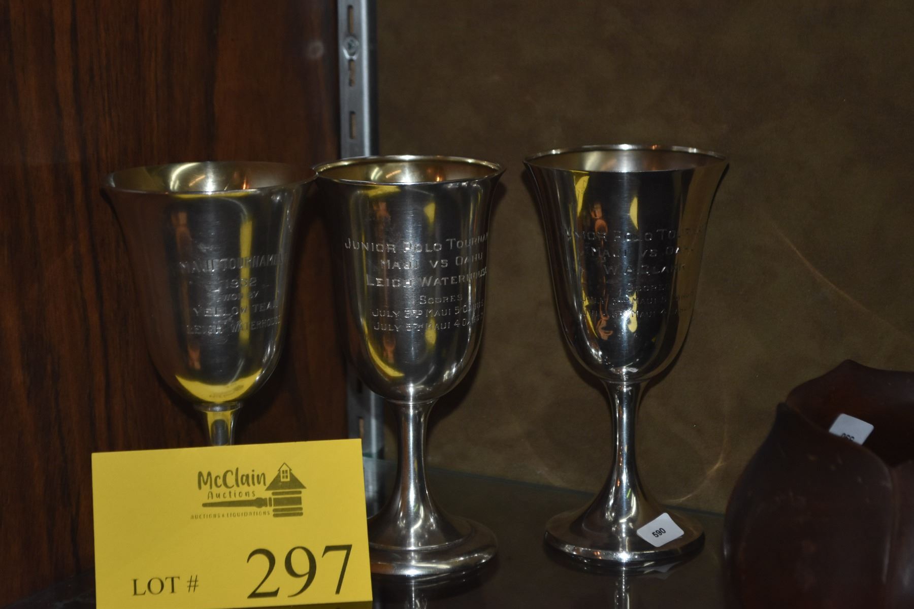 STERLING SILVER TROPHY CUPS, 1932 MAUI TOURNAMENT & JUNIOR POLO TOURNAMENTS MAUI VS. OAHU (440.2 GTW) (3 PCS)