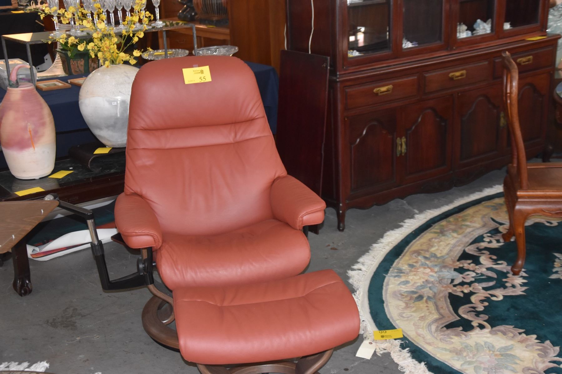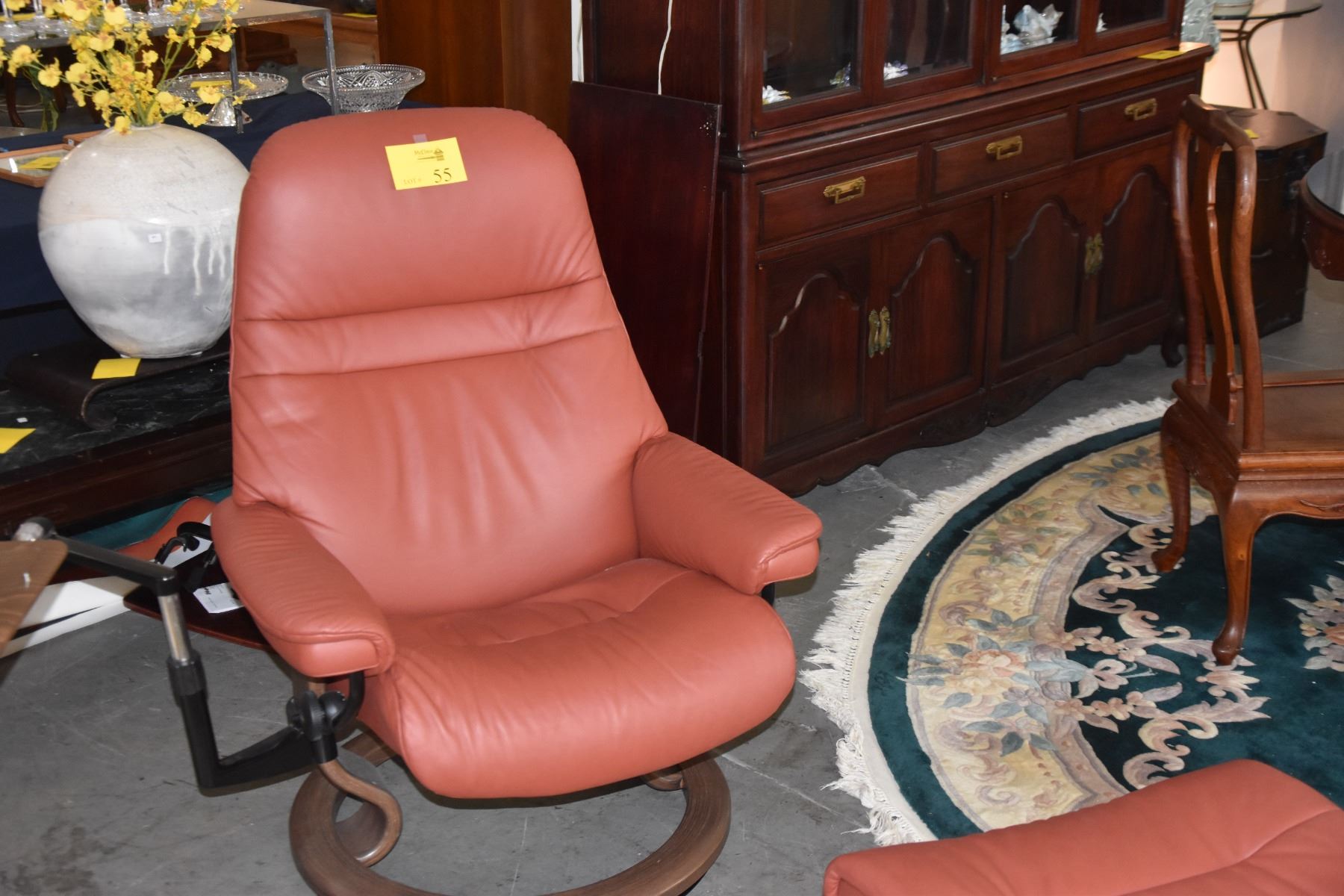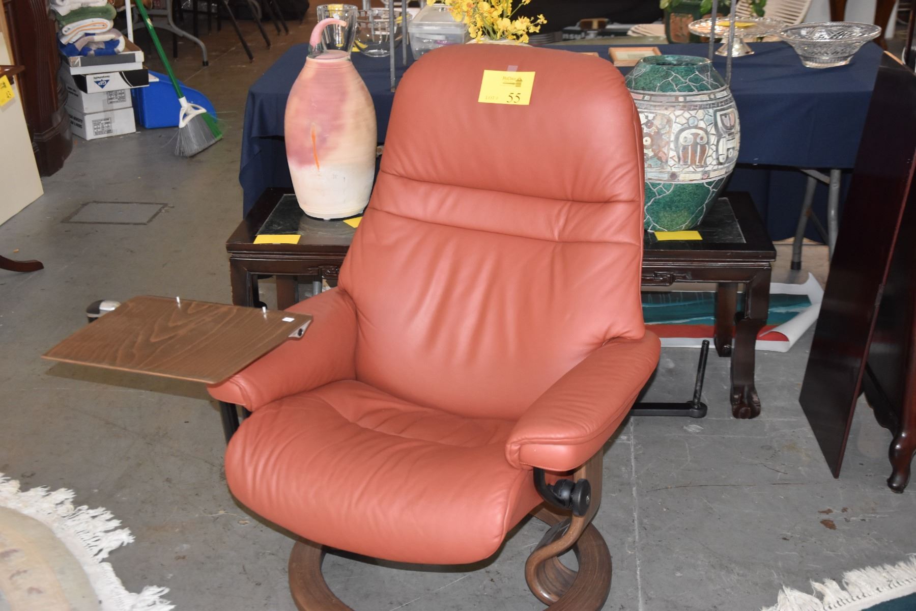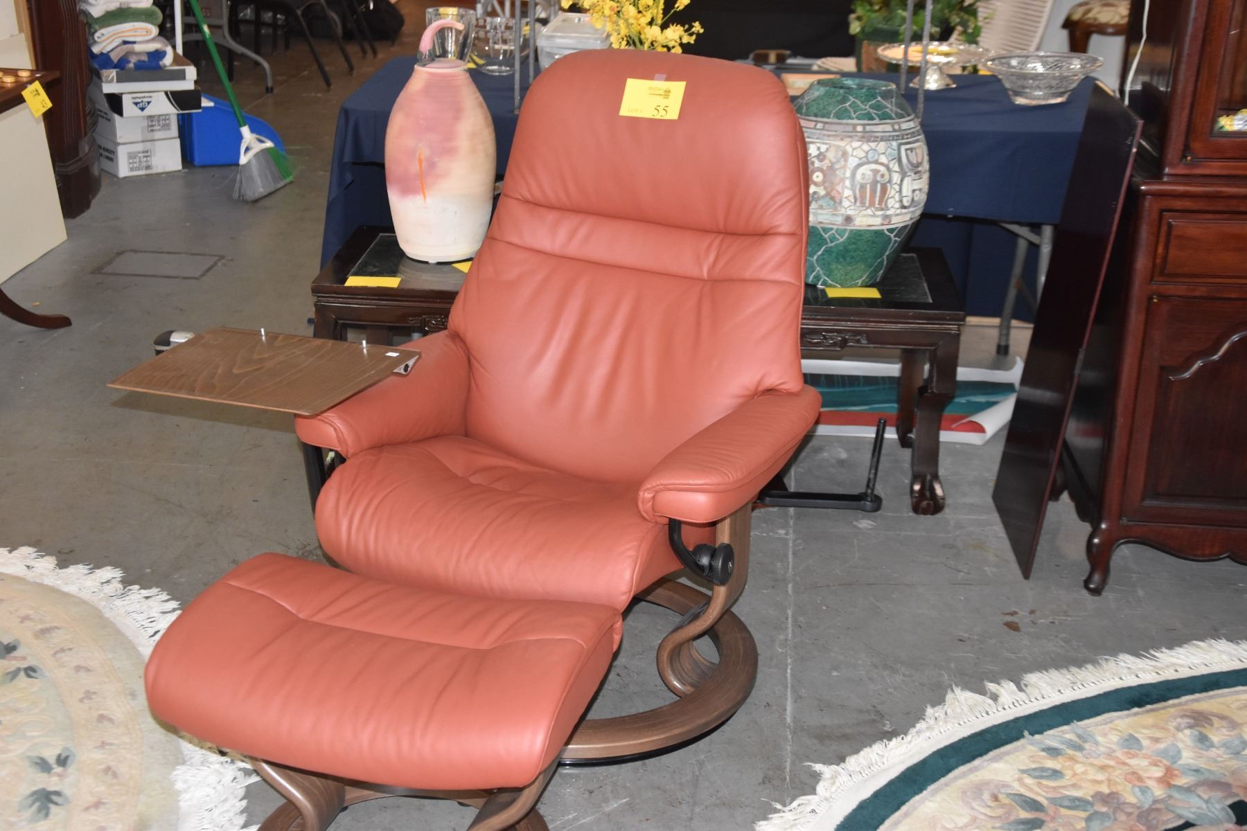 STRESSLESS RECLINING CHAIR W/OTTOMAN & 2 TRAYS