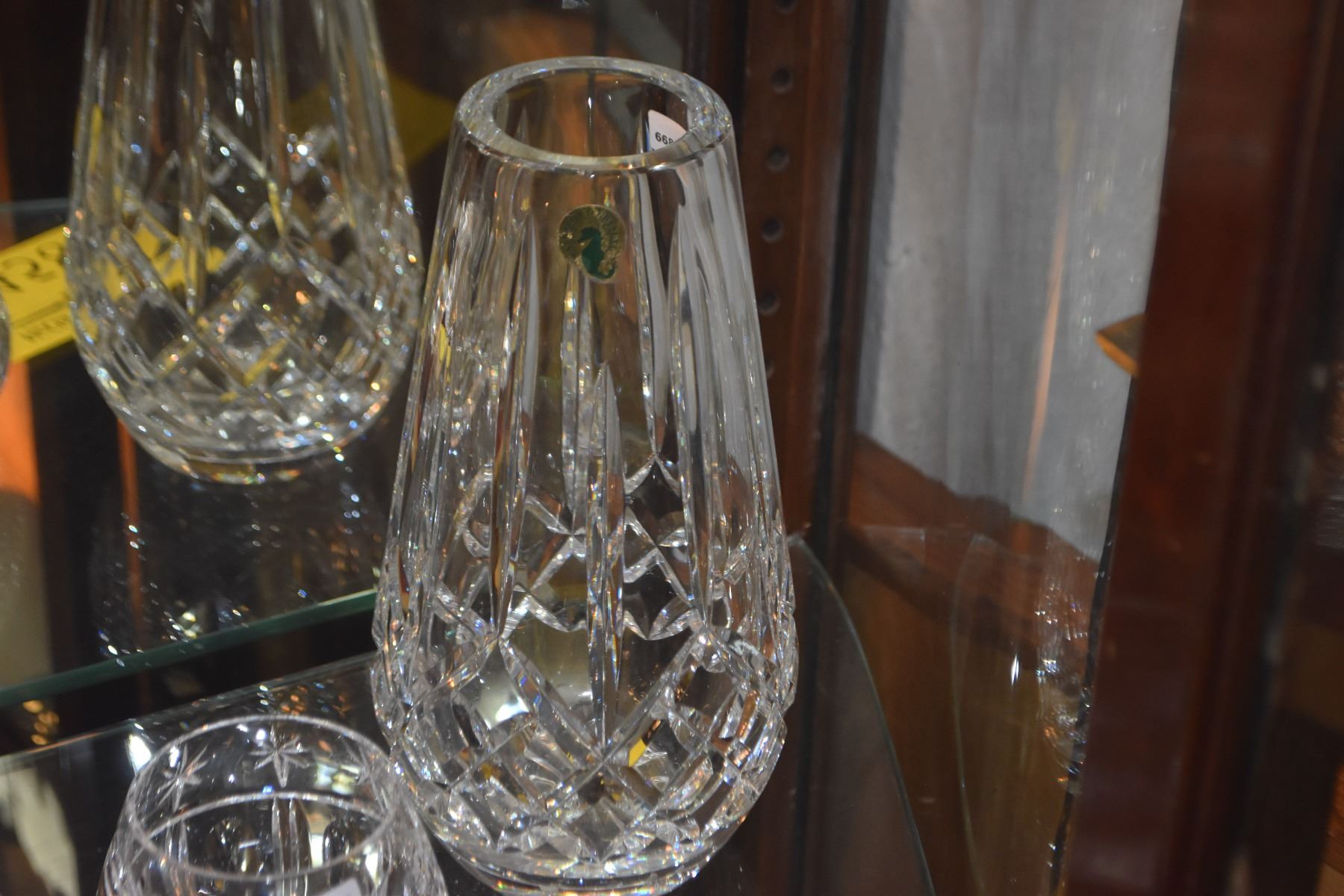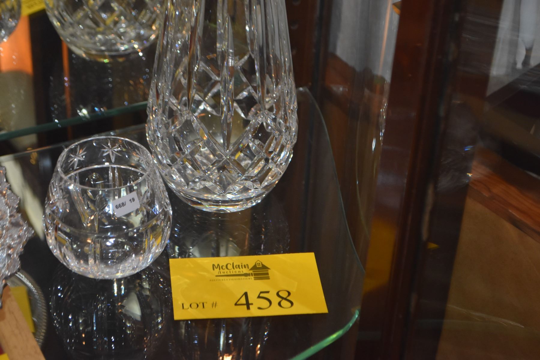 TALL WATERFORD CRYSTAL VASE & WATERFORD VOTIVE HOLDER (2 PCS)