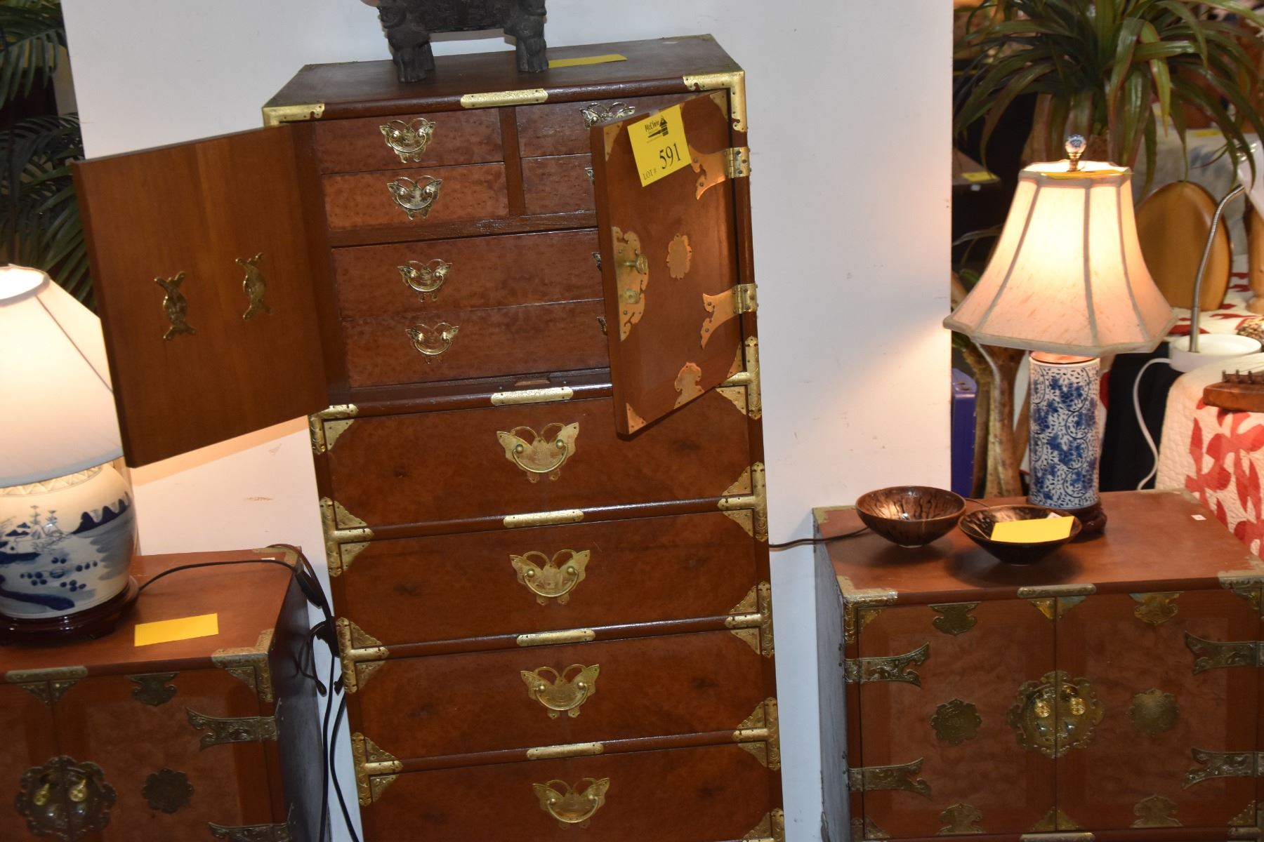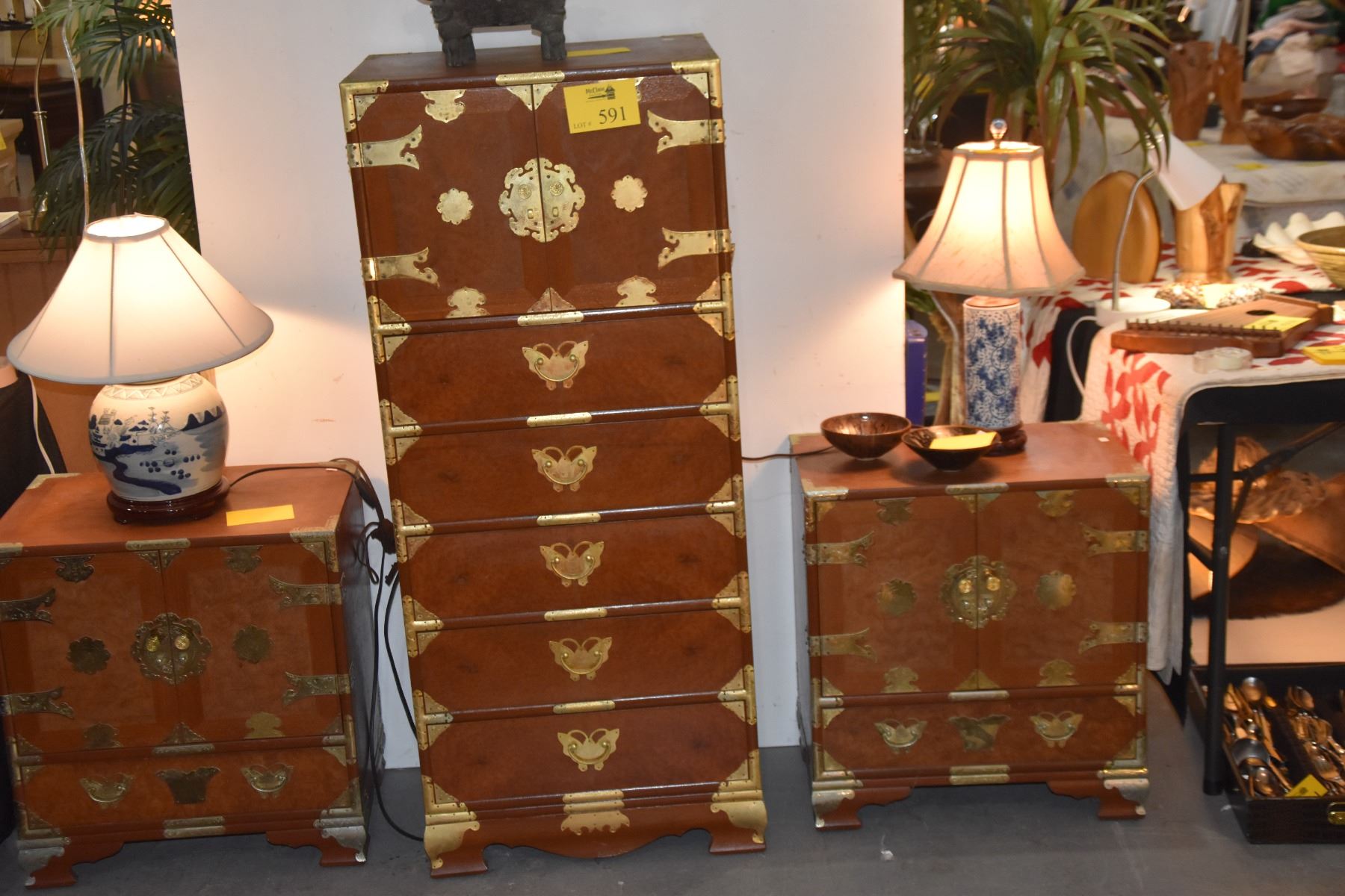 TANSU W/11 DRAWERS (22" X 52" X 16") & 2 NIGHT STANDS W/4 DRAWERS (22" X 24" X 14") (3 PCS)