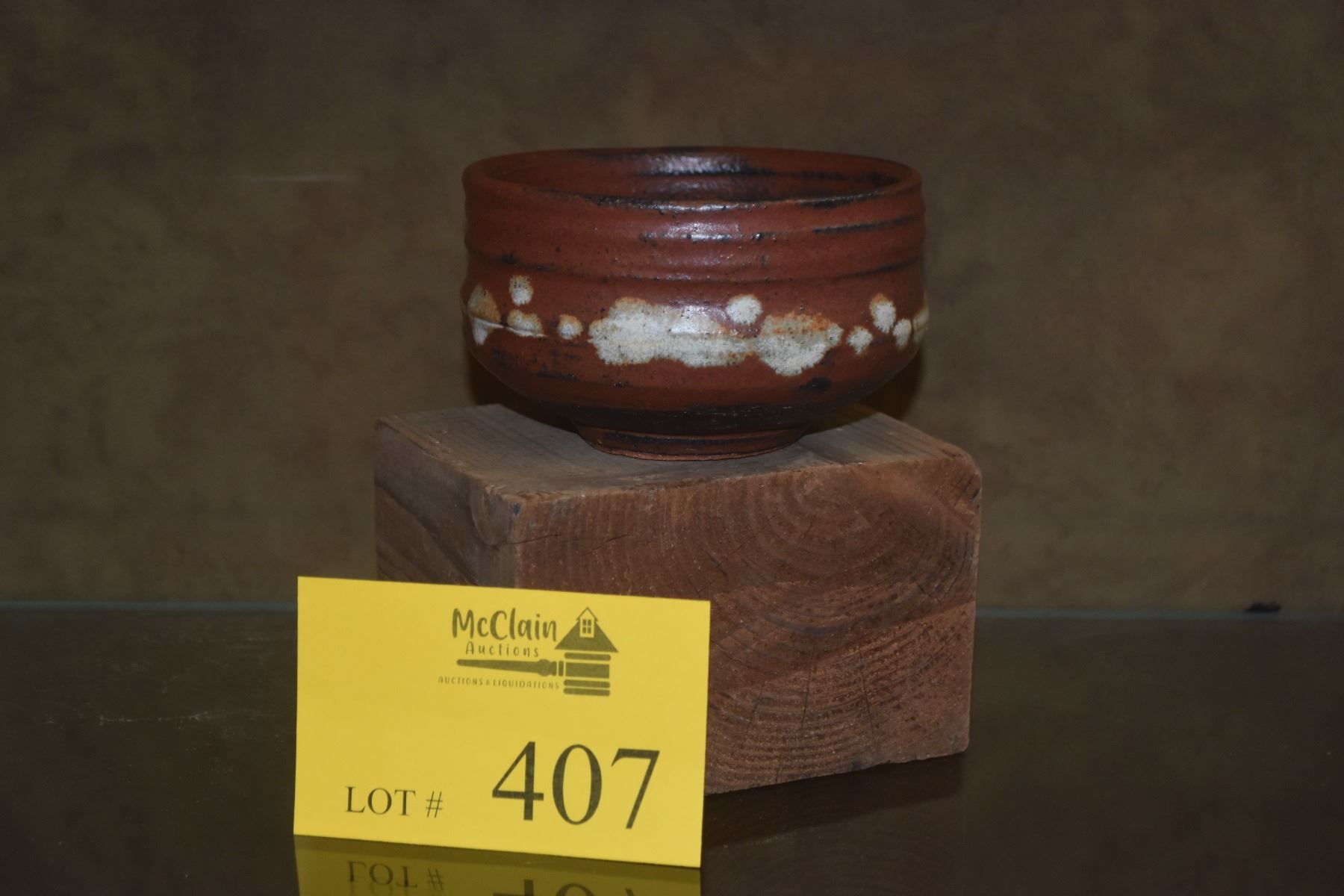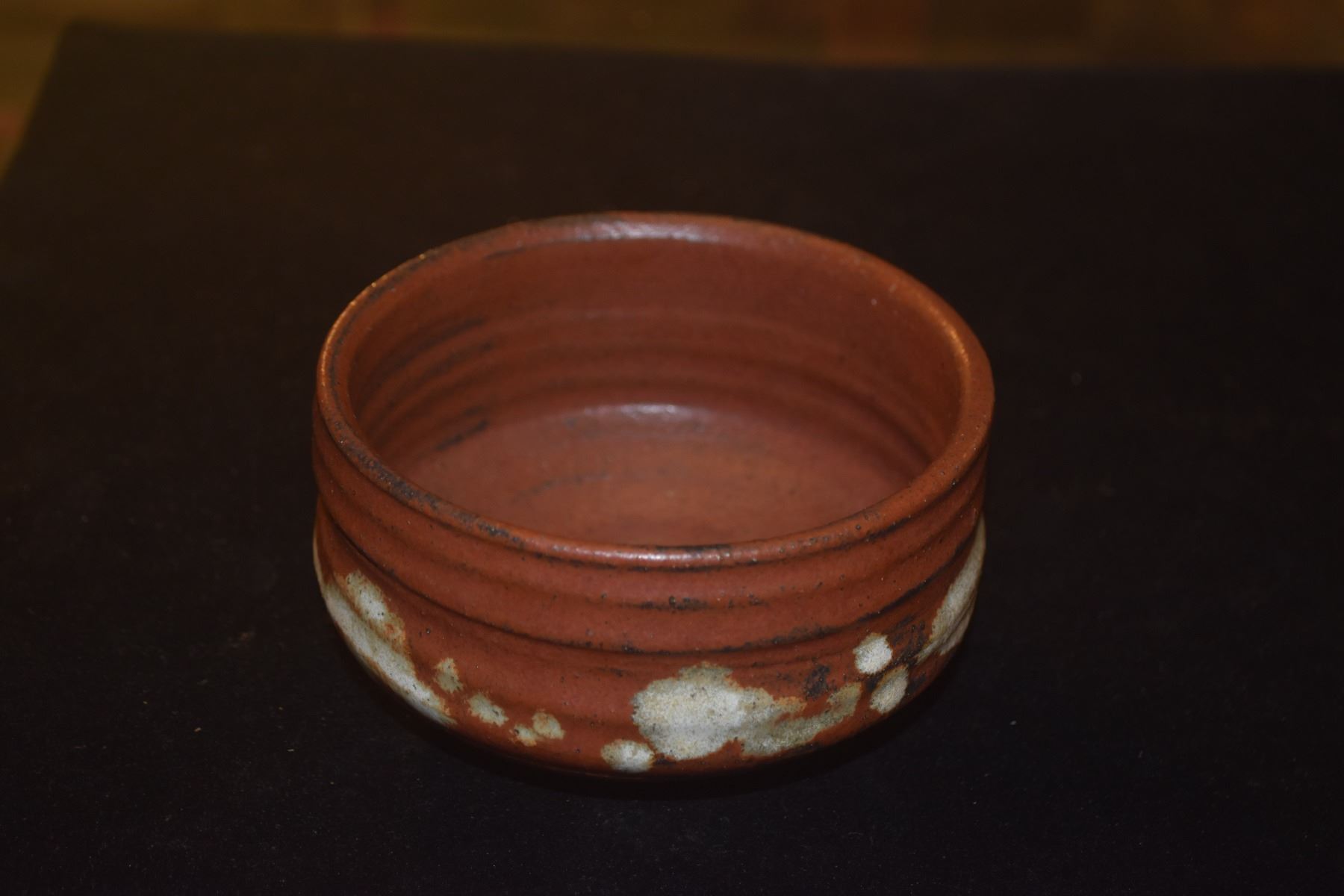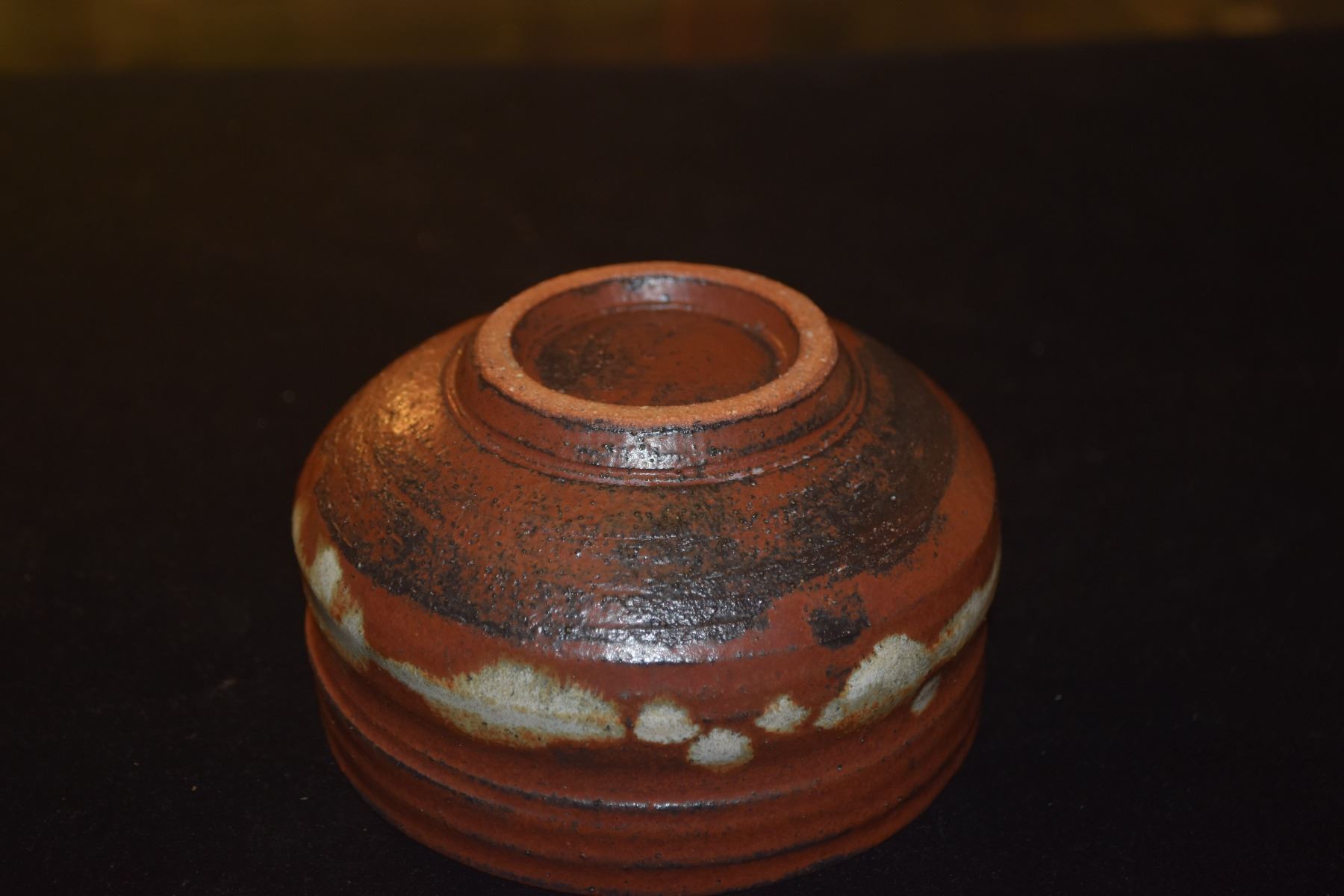 TEA BOWL W/KEAWE ASH & WHITE GLAZE BRUSHSTROKES; HIGA (5" X 3") (DOES NOT INCLUDE STAND)