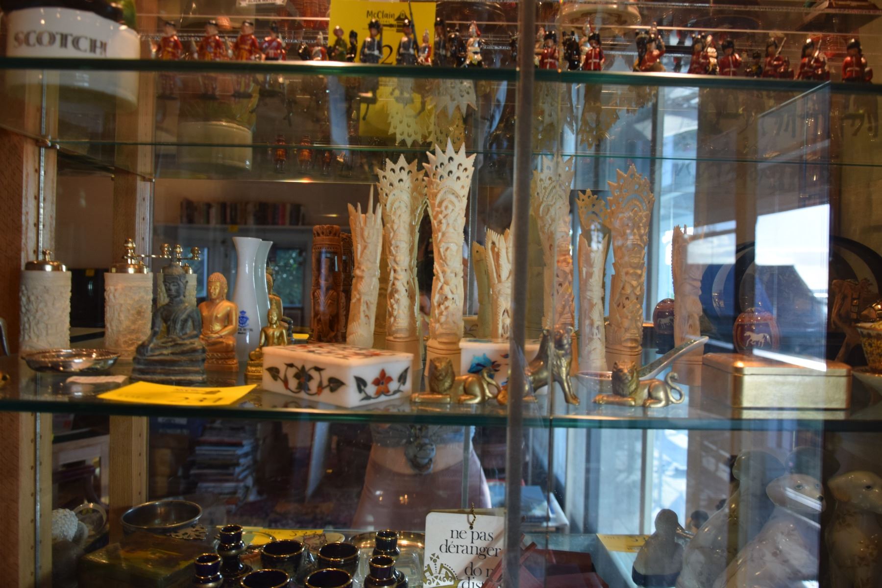 THAI BUDDHA FIGURES, BONE CARVINGS, INLAID BOXES, ETC. (32 PCS)