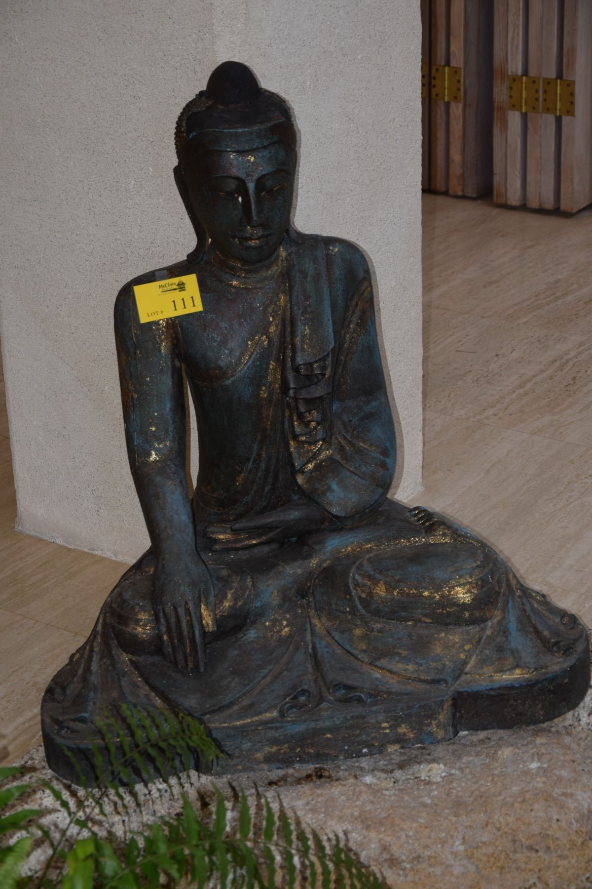 THAI SEATED BUDDHA FIGURE (DAMAGE TO TOP) (41" H X 33" W)