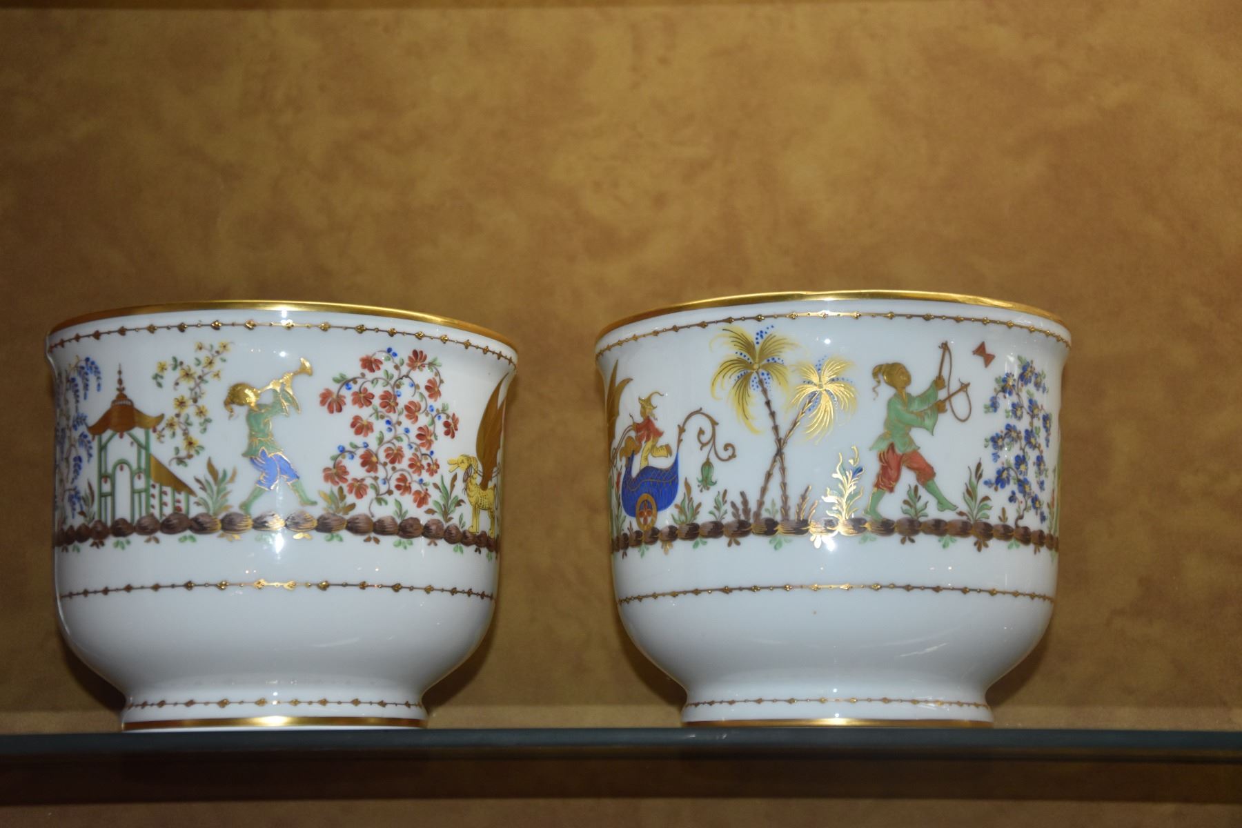 TIFFANY & CO. HAND PAINTED FLOWER POTS, MADE IN FRANCE (PAIR)