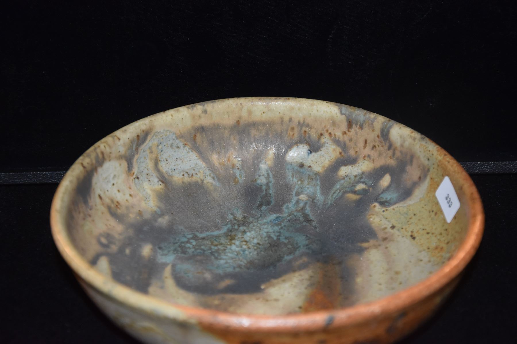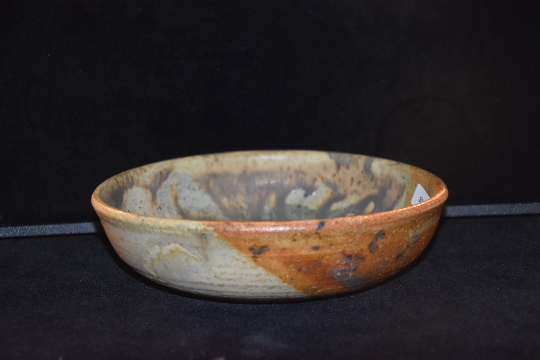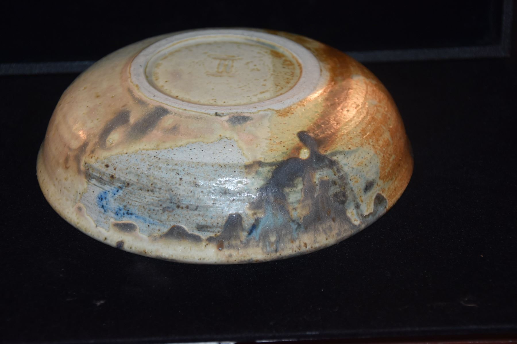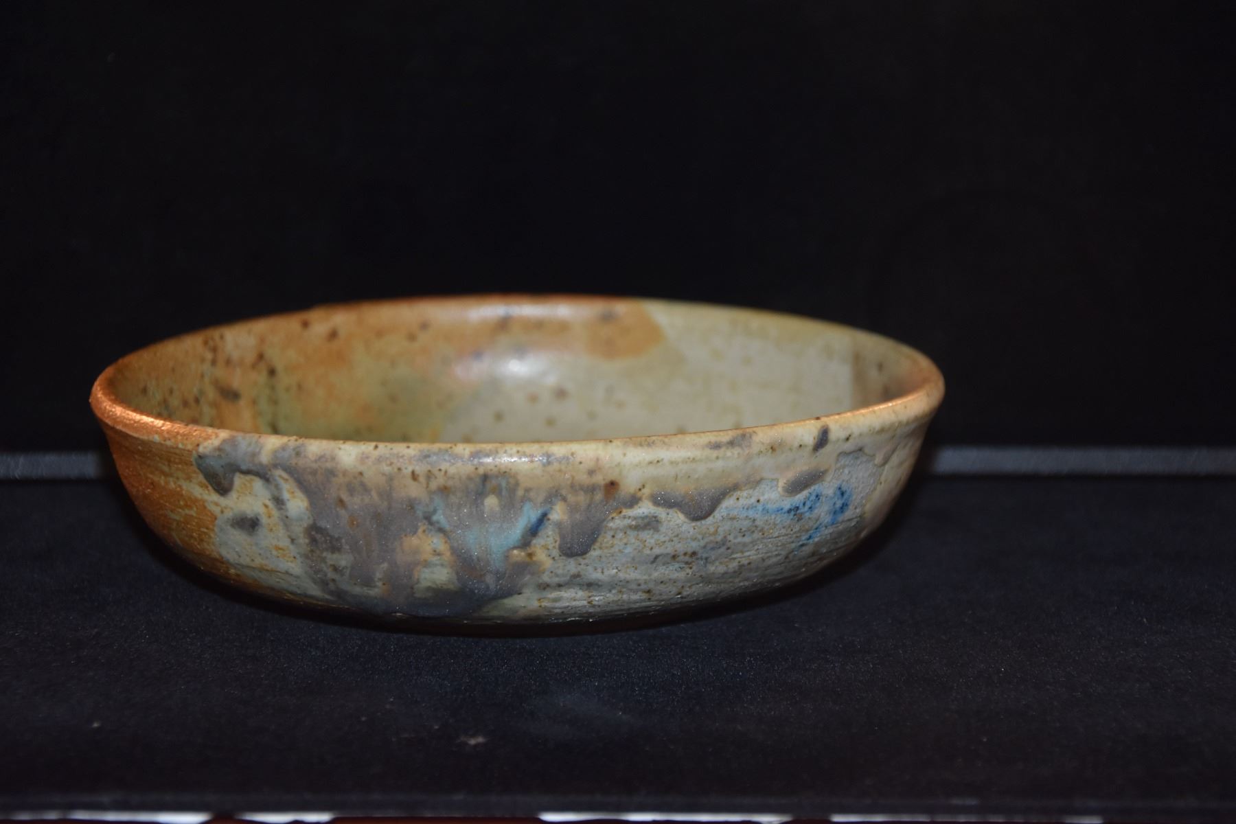 TOSHIKO TAKAEZU CERAMIC LOW BOWL; SIGNED (7 1/4" X 2")