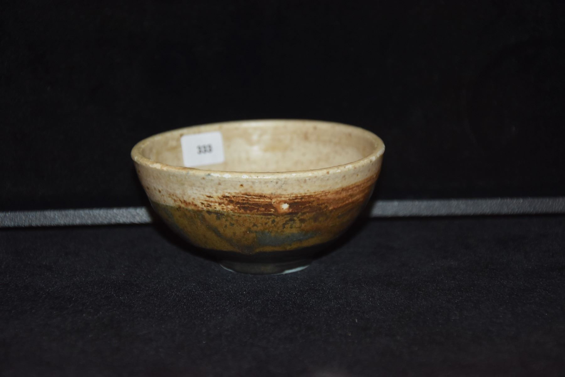 TOSHIKO TAKAEZU CERAMIC TEA BOWL; SIGNED (3 3/4" X 2")