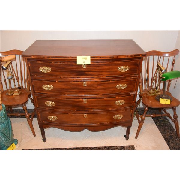 MAHOGANY BOW FRONT CHEST OF DRAWERS W/INLAY9 - MAHOGANY BOW FRONT CHEST OF DRAWERS W/INLAY