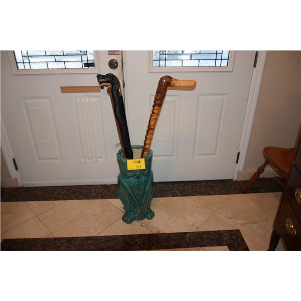 COLLECTION OF WALKING STICKS & CERAMIC OWL HOLDER (6 PCS)10 - COLLECTION OF WALKING STICKS & CERAMIC OWL HOLDER (6 PCS)