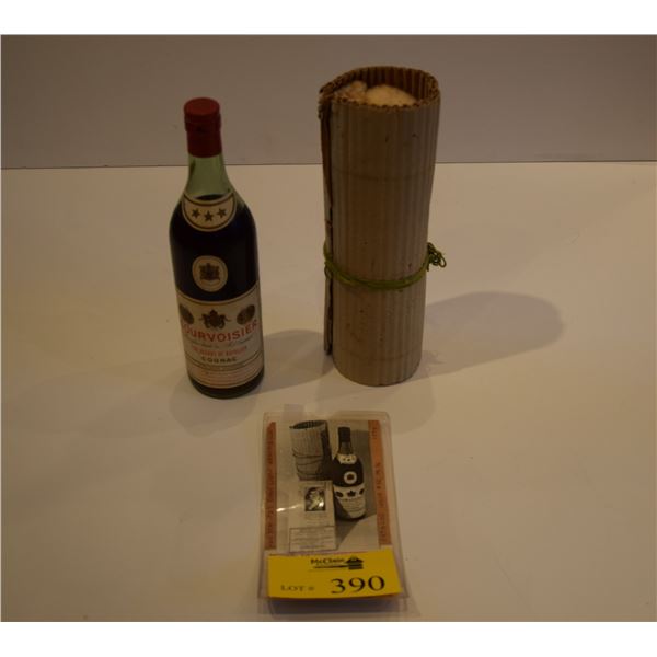 NORMANDIE: UNOPENED BOTTLE OF COURVOISIER COGNAC W/CORRUGATED WRAPPER & GREEN CORD, WRITTEN ON THE S390 - NORMANDIE: UNOPENED BOTTLE OF COURVOISIER COGNAC W/CORRUGATED WRAPPER & GREEN CORD, WRITTEN ON THE S