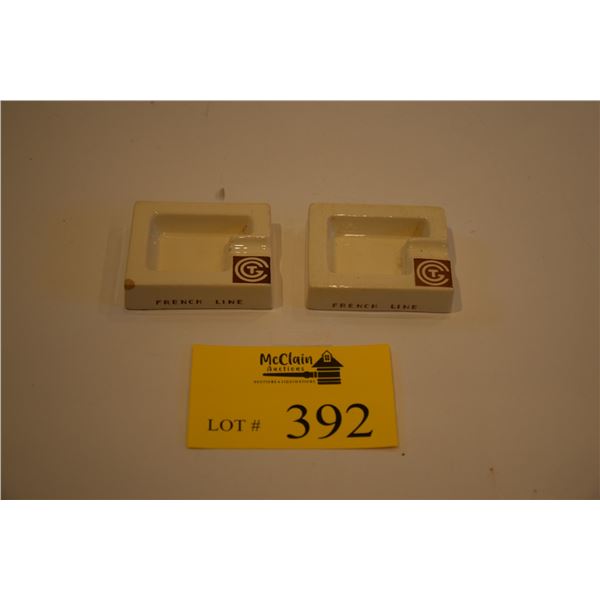NORMANDIE: HER ASHTRAY BY JEAN LUCE, MINT GREEN W/HER'S & COMPANY'S NAME & LOGO IN FORREST GREEN (THESE WERE USED ABOARD, NOT SOLD) ...