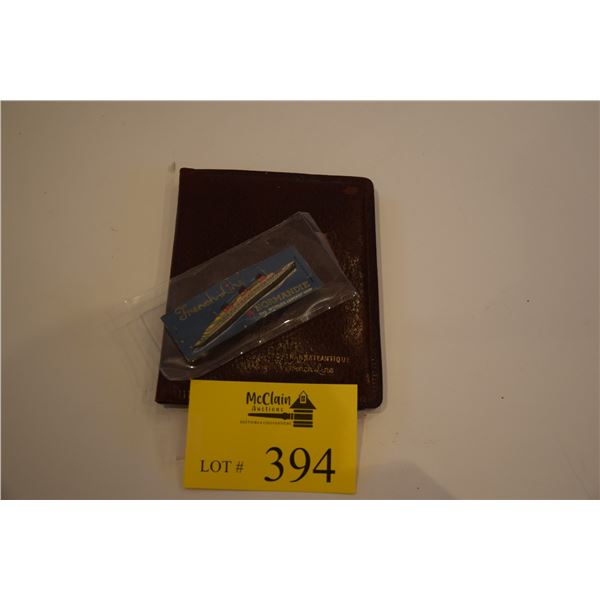 NORMANDIE: 1ST CLASS DINING SALOON-THE STEWARD'S SPECIAL ORDER HOLDER, BOUND IN MAROON MORACCO W/COMPANY NAME IN FRENCH & ENGLISH IMPRINTED ...