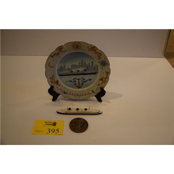 NORMANDIE COLLECTION: HAVILAND LIMOGES PLATE-"1935 NORMANDIE 1939", (9 3/4"), MECCANO DINKY NORMANDIE BOAT & NORMANDIE BRONZE MED...