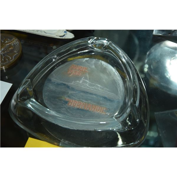 NORMANDIE: CRYSTAL ASHTRAY CREATED FOR HER BUILDER TO COMMEMORATE HER COMPETION IN APRIL 1935, NORMANDIE'S PORTRAIT AT SEA IN 3 DIMENSIONS, HER ...