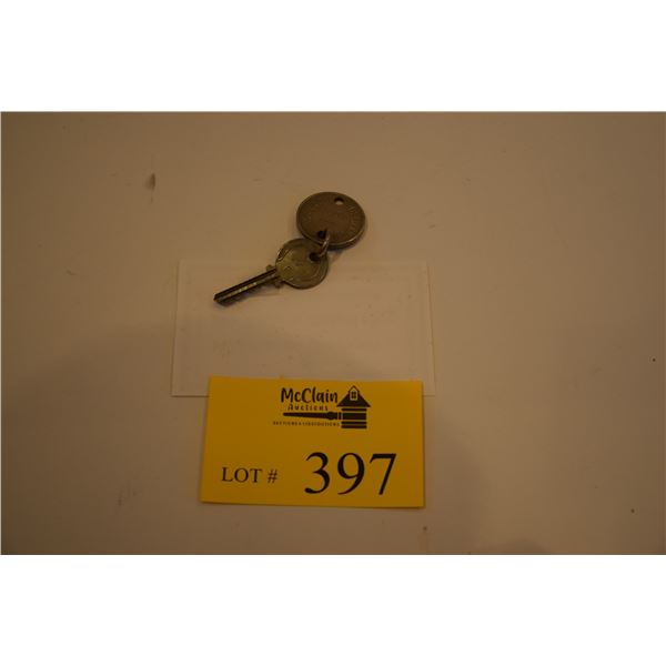 NORMANDIE: STATEROOM KEY & TAG, ON ONE SIDE OF THE TAG EMBOSSED "PAQUEBOT NORMANDIE-FRENCH LINE" & O397 - NORMANDIE: STATEROOM KEY & TAG, ON ONE SIDE OF THE TAG EMBOSSED "PAQUEBOT NORMANDIE-FRENCH LINE" & O