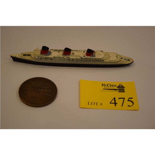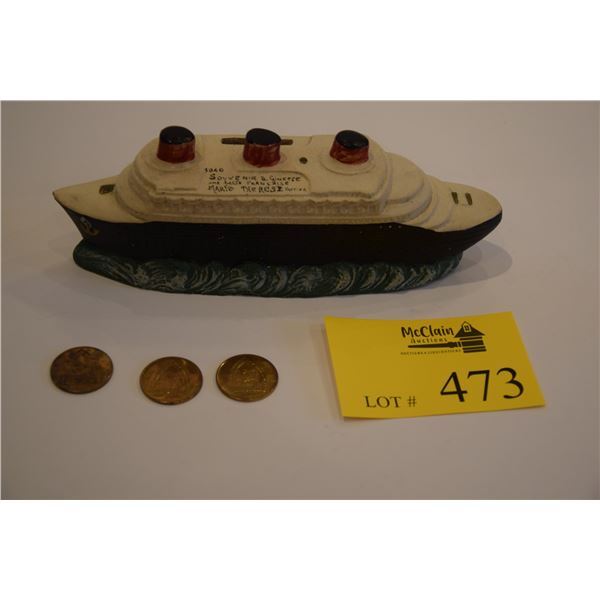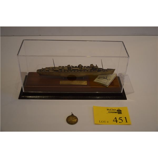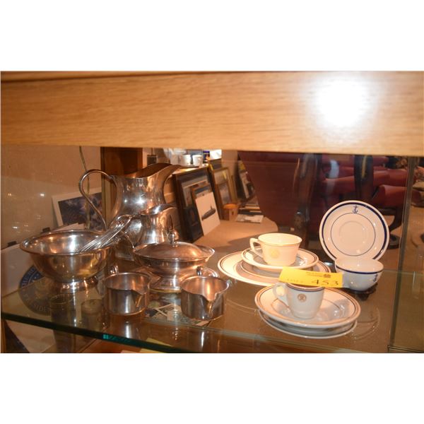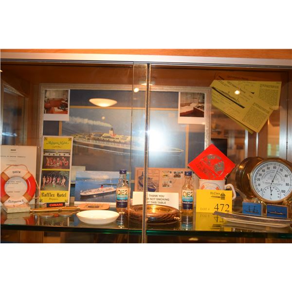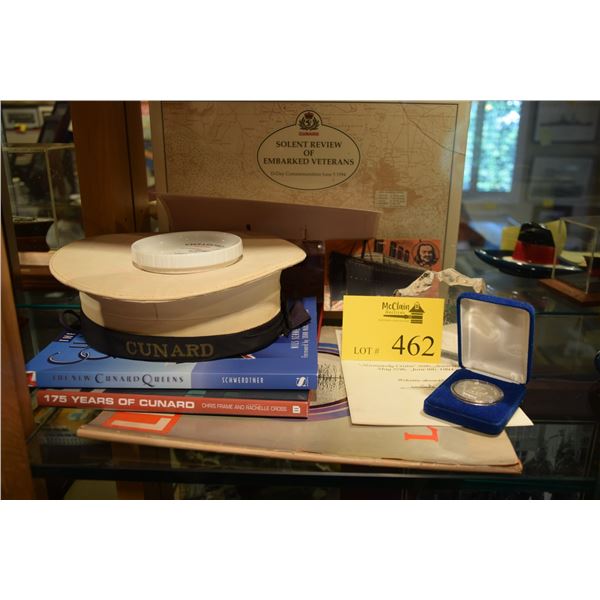 472 - MIXED LOT-QE2: VINTAGE STERLING QE2 PENDANT, COMMERATIVE COIN JUBILEE (2), DISHES, PENS, MENU, CUP, McClain Auctions Hawaii