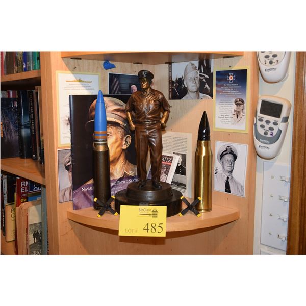 LARGE MIXED LOT US NAVY MEMORABILIA & COLLECTIBLES: DINING TRAYS, GAS MASK, STEINS, PAPER WEIGHTS, BOOKENDS, PLATES, TRIVETS, DOLL & BOBBLE ...