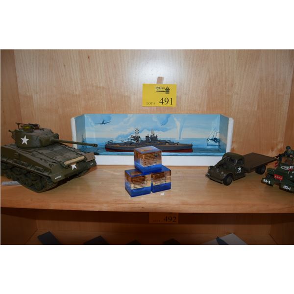 MIXED LOT: ASSORTED SHIPS, MUGS & GLASSES (USS IOWA, USS NEW JERSEY, USS MISSOURI, USS WISCONSIN), MEDALLIANS, FRAMED PRINTS, ETC. (18 PCS)
