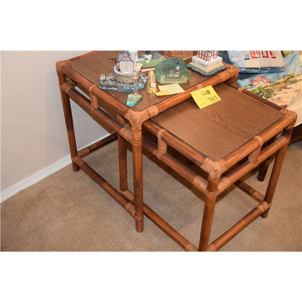 RATTAN NESTING TABLES (2) & RATTAN SIDE TABLES (2) (4 PCS)