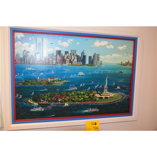 FRAMED GICLEE W/HAND EMBELLISHMENT ON CANVAS; SIGNED (38" X 27")