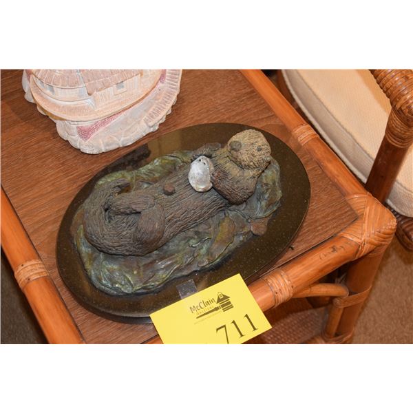 BRONZE SEA OTTER ON MARBLE BASE; SIGNED WYLAND (12" X 8 1/4")